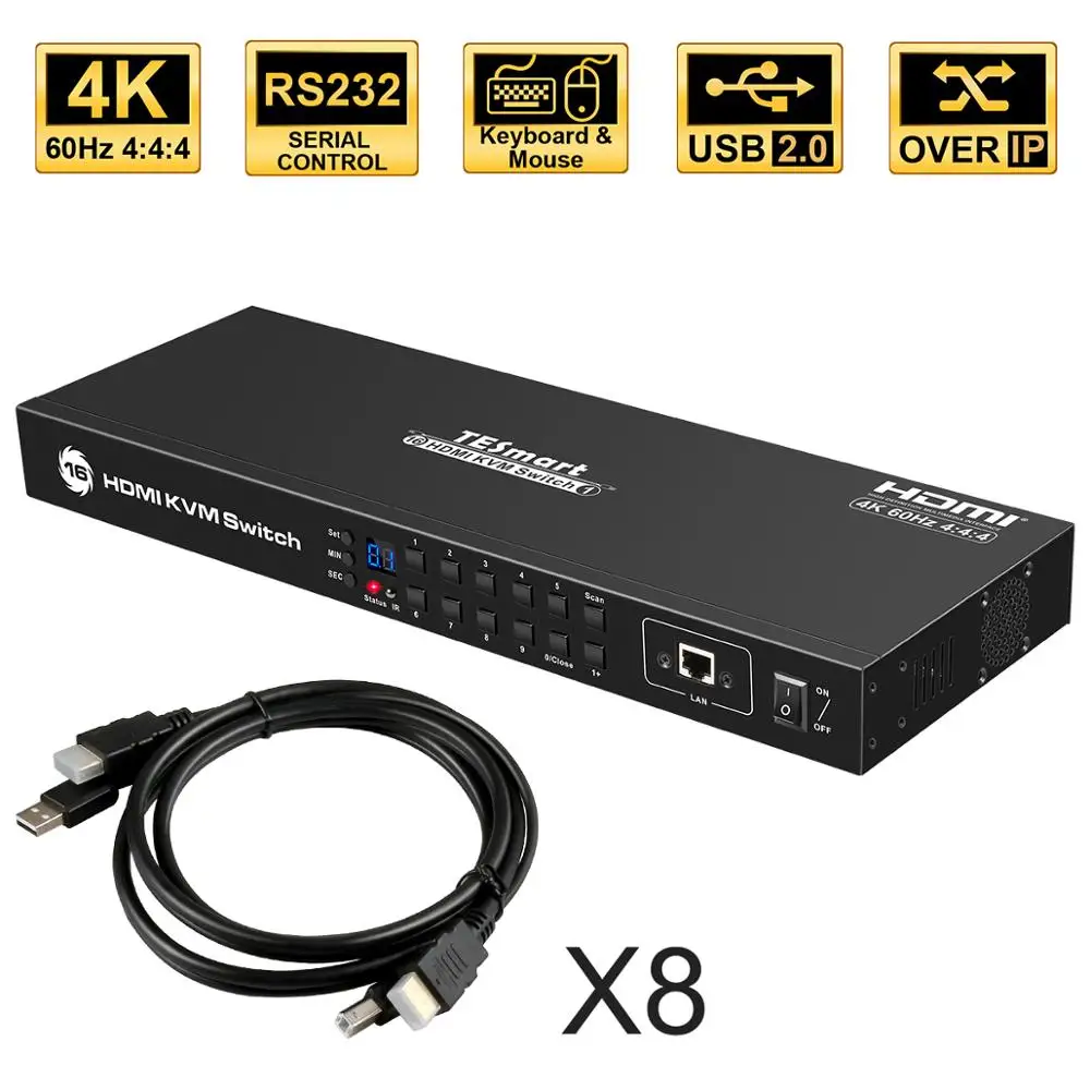 TESmart 8x1 HDMI KVM Switch 4K@60Hz - 8 PC 1 Monitor Schalter Mit USB 3.0