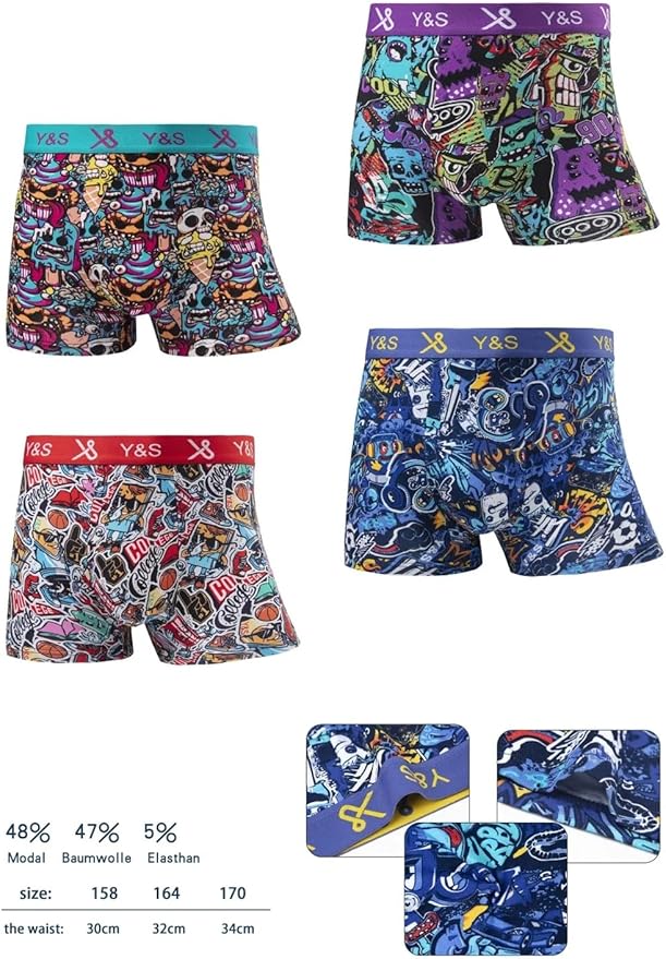 Oh, diese Boxershorts für Jungs sind ja mal richtig lustig! 4er Pack mit verschiedenen Cartoon-Designs - immer Abwechslung im Schrank.