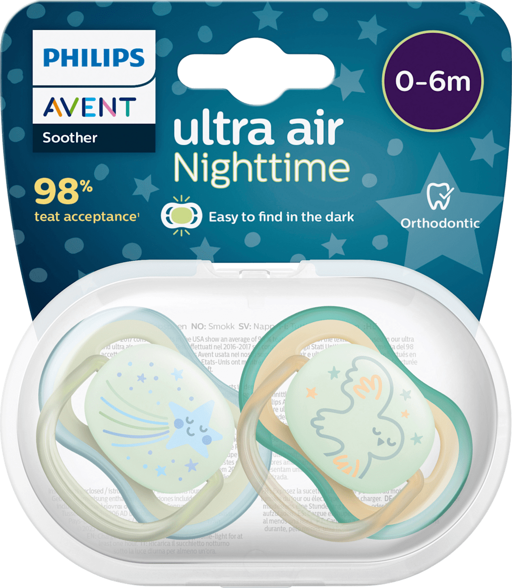 Philips Avent Ultra Air Schnuller 4er-Pack - Kiefergerecht Für Babys 0-6 Monate, Leuchtet Nachts