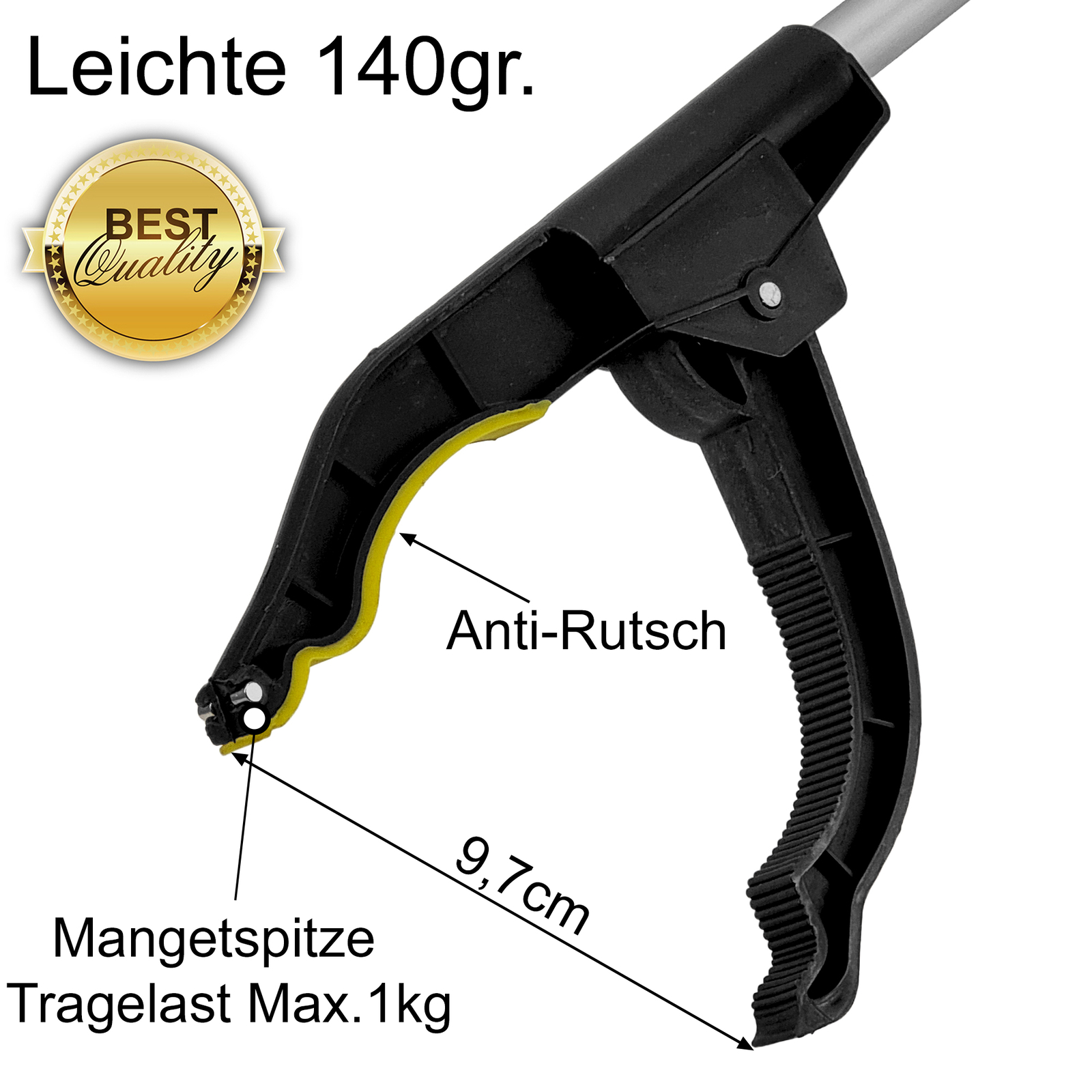 Hey, diese Grab-It Greifzangen sind mega praktisch für Garten und Haushalt! Im 4er-Set hast du gleich mehrere für die ganze Familie oder zum Verteilen. Mit 76 cm Länge erreichst du damit super einfach Blätter, Zweige oder heruntergefallene Gegenstände ohne dich bücken zu müssen. Das Aluminium ist leicht aber trotzdem robust und die Zange kann bis zu 1 kg heben. Das geniale Feature: Ein integrierter Magnet! Damit kannst du sogar Schrauben, Schlüssel oder andere metallische Kleinteile aufheben. Der rutschfeste Griff liegt super in der Hand und die Bedienung ist total einfach - egal ob Rechts- oder Linkshänder. Perfekt für Gartenarbeit, zum Müllsammeln oder um an schwer erreichbare Stellen zu kommen. Mit nur 190 Gramm Gewicht ist die Zange angenehm leicht und ermüdet nicht so schnell. Ein echter Helfer für alle, die nicht ständig klettern oder bücken wollen!