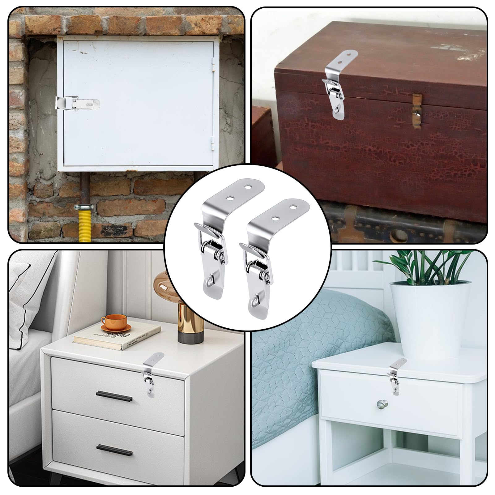 Für stabile und sichere Verschlüsse! Dieses Set mit 4 Edelstahl-Spannverschlüssen und 16 Schrauben ist perfekt für Kisten, Werkzeugkästen, Schränke und mehr. Die 90-Grad-Winkel-Designs sorgen für festen Halt und verformen sich nicht leicht. Aus hochwertigem, rostfreiem Edelstahl gefertigt - kratzfest, korrosionsbeständig und extrem langlebig. Die Feder bietet hohe Spannung und Stabilität für sicheres Öffnen und Schließen. Einfache Montage: Einfach Löcher vorbohren, Spannverschlüsse ansetzen und mit den mitgelieferten Schrauben festziehen. Ideal für Heimwerker und Profis. Passt zu den meisten Koffern, Schubladen, Instrumentenkoffern und Holzmöbeln. Die silberne Farbe fügt sich dezent in jedes Design ein. Mit diesem Set hast du alles, was du für sichere Aufbewahrungslösungen brauchst. Perfekt für Haus, Büro oder Werkstatt - wo auch immer du stabile Verschlüsse benötigst!