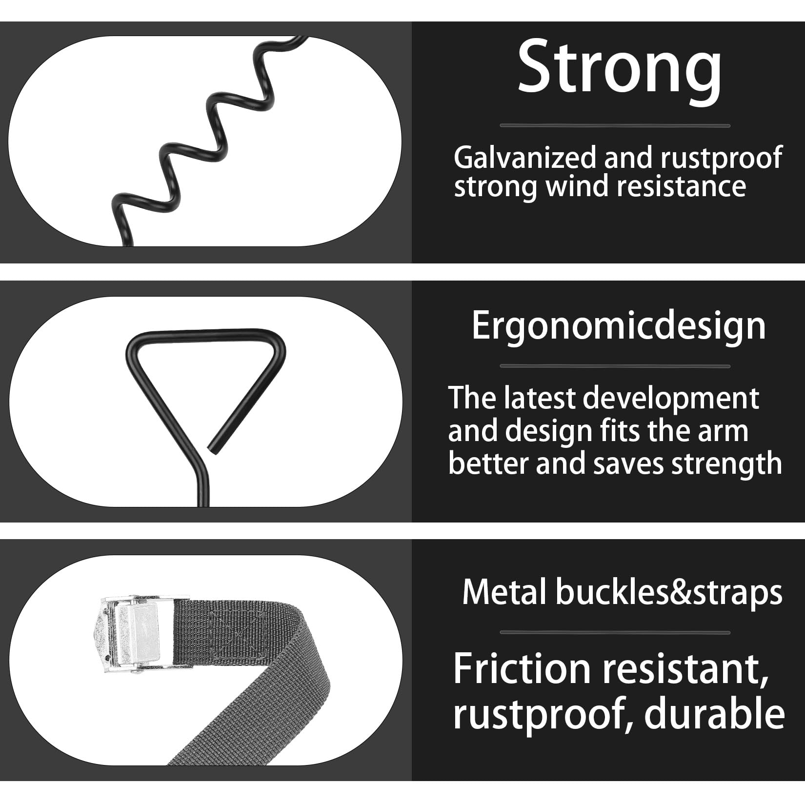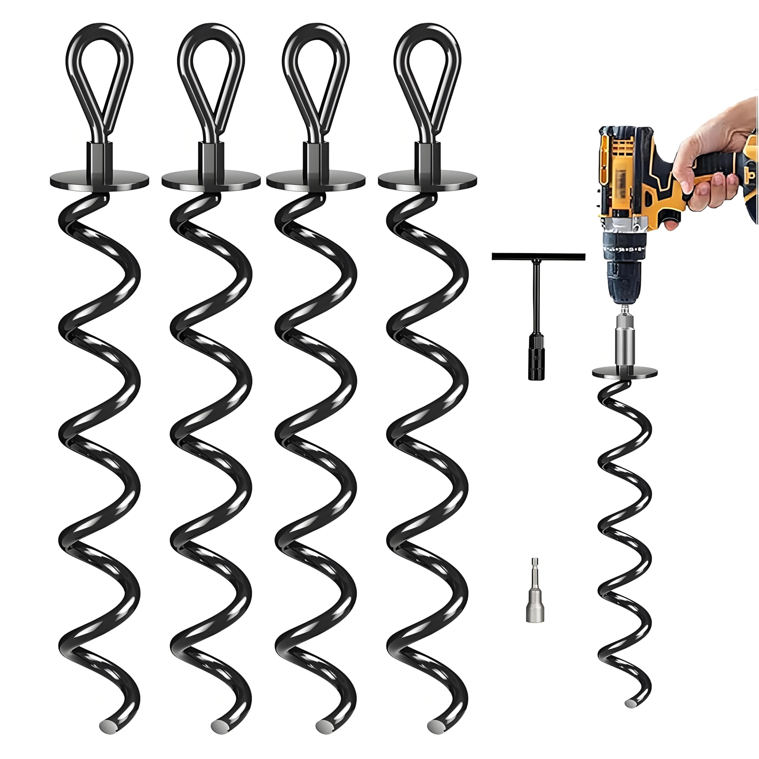 4er Set Bodenanker Für Trampolin & Schaukel - 37cm Spiralanker + 3m Zurrgurte (schwarz/grau)