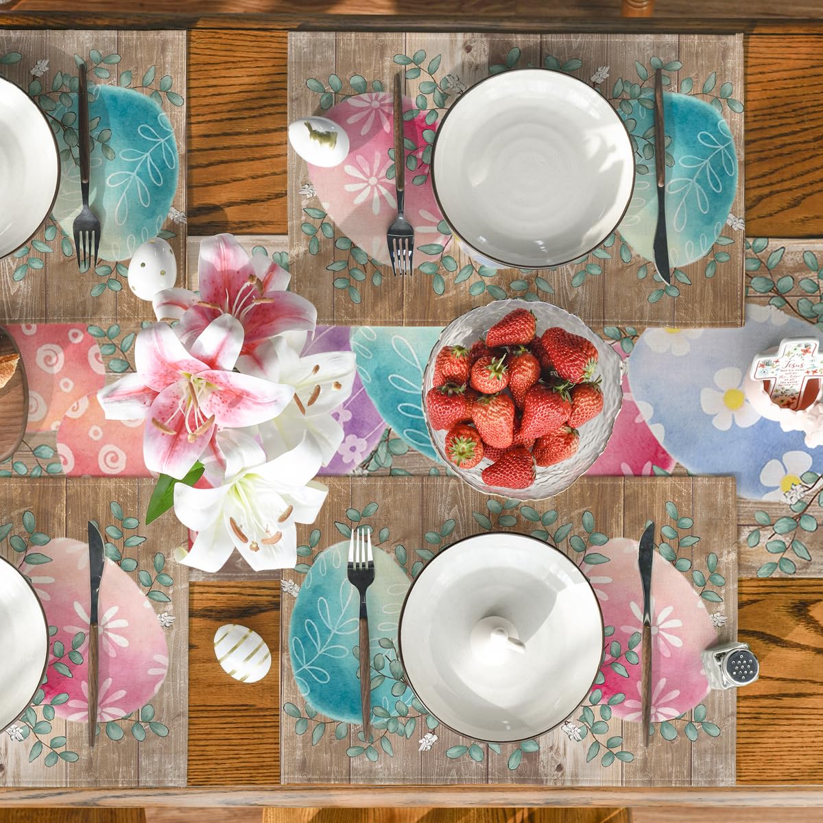 Artoid Mode Ostern Tischsets 4er Set - Eukalyptus Mit Ostereiern 30x45cm