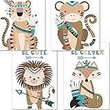 4er Set Kinderzimmer Poster A4 - Waldtiere Deko Skandinavisch Babyzimmer