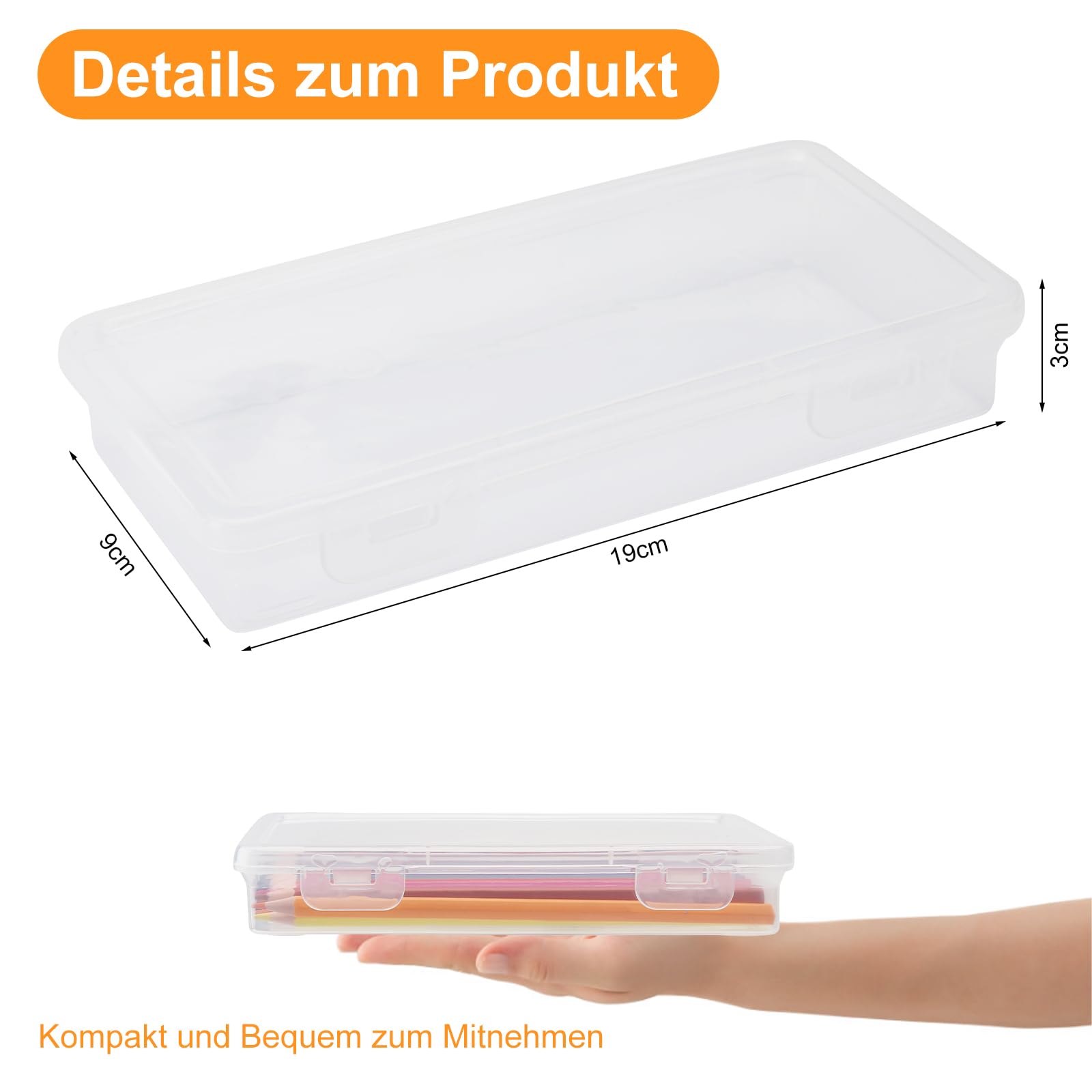 UOCAI Stiftebox 4er Set - Transparente Aufbewahrungsbox Mit Schnappdeckel 19x9,5x3cm
