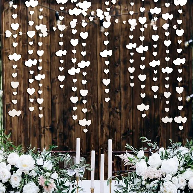 52ft Weiße Herz Girlande - 5x 4m Papier Streamer Für Hochzeit & Party