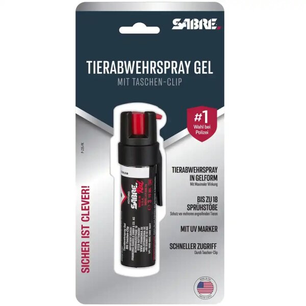 Sabre-Red Pfefferspray Gel - Tierabwehr Mit 4m Reichweite, 35 Sprühstöße, Trageclip