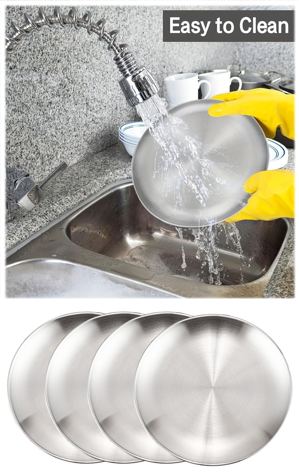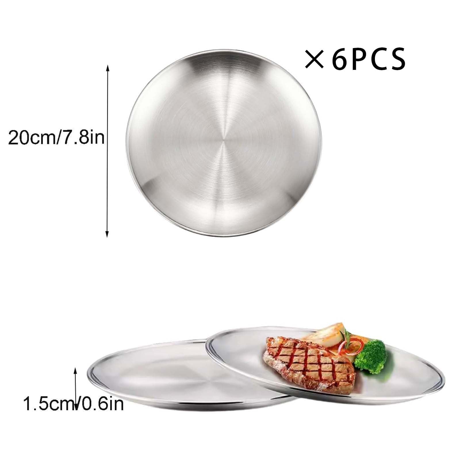 Weg von Einweg-Geschirr, hin zu diesen robusten Edelstahl-Tellern! Das 4-teilige Set ist perfekt für Camping, Picknick, Gartenparty oder einfach den täglichen Gebrauch in der Küche. Aus hochwertigem 304er Edelstahl gefertigt, der rostfrei, kratzfest und absolut lebensmittelecht ist. Jeder Teller hat 20 cm Durchmesser - die ideale Größe für Steaks, Nudeln, Salat oder Frühstück. Die gebürstete Oberfläche sieht nicht nur stylisch aus, sondern ist auch supereinfach zu reinigen. Einfach mit Wasser abspülen oder abwischen - keine Chance für hartnäckige Rückstände! Dank der stapelbaren Form sparst du jede Menge Platz in der Küche oder im Rucksack. Der gerollte Rand sorgt für angenehmes Handling und verhindert das Abrutschen von Essen. Achtung: Nicht für die Mikrowelle geeignet! Vor der ersten Benutzung einfach mit warmem Seifenwasser abwaschen. Mach dein nächstes Outdoor-Abenteuer noch entspannter mit diesem praktischen Geschirr-Set!