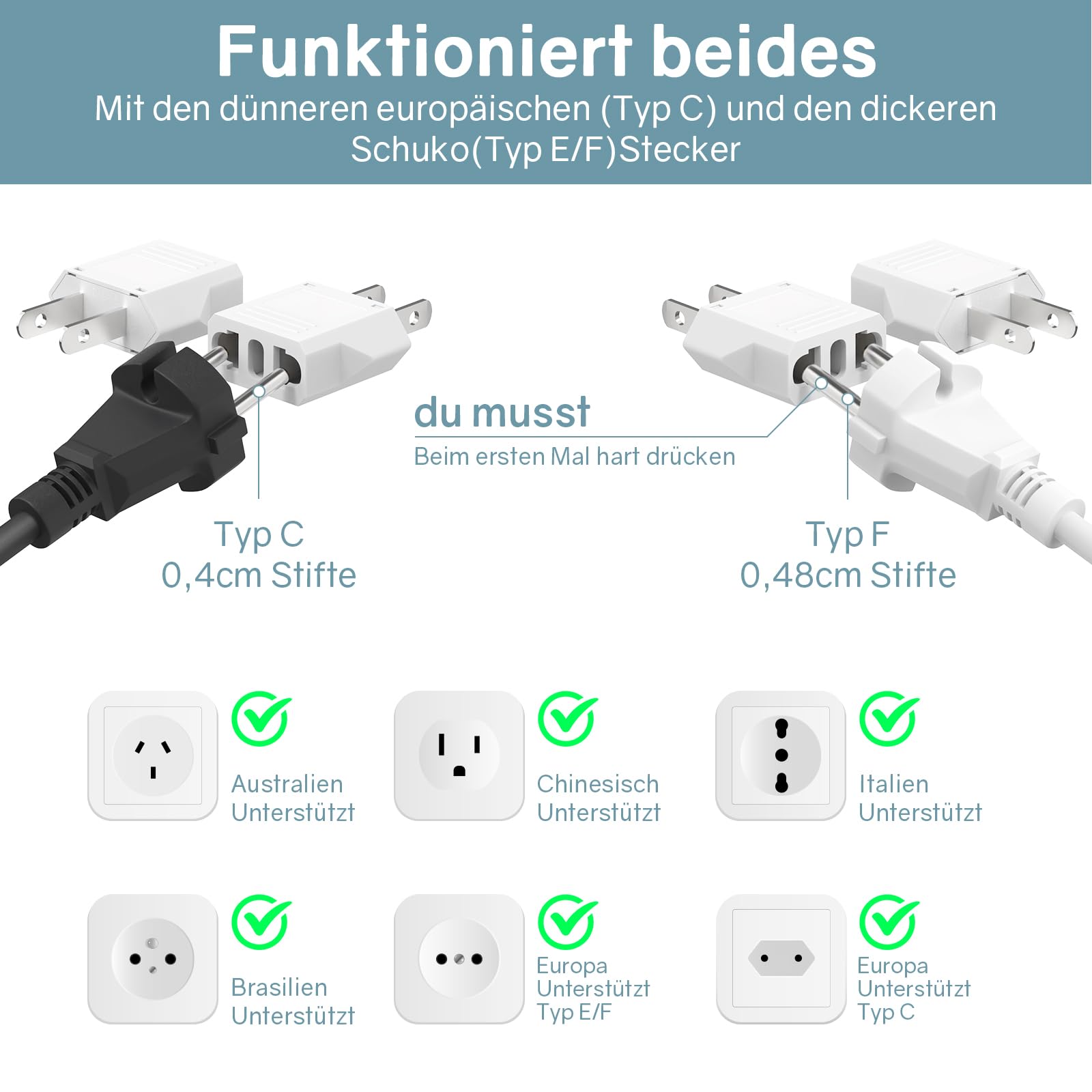 Puh, Steckerchaos im Urlaub? Mit diesen 4 Reiseadaptern bist du bestens vorbereitet für deine nächste USA-Reise! Die Adapter wandeln europäische Stecker (die zwei runden Stifte) in amerikanische Flachstecker um - perfekt für USA, Kanada, Japan, China und Mexiko. Aus feuerfestem Polykarbonat mit Kupferleitern sind sie absolut sicher und halten 125-250V und 6A aus. Super kompakt und leicht - passen in jede Reisetasche. Wichtig: Das sind nur Adapter, keine Spannungswandler! Also vorher checken, ob dein Gerät 125-250V verträgt. Ideal für Laptop, Smartphone, Rasierer, Haartrockner, Lockenstab - einfach alles, was du im Urlaub so aufladen musst. Mit Erdung für extra Sicherheit. Vier Stück im Set - perfekt für die ganze Familie oder als Reserve. Nie mehr Stress mit inkompatiblen Steckdosen im Hotelzimmer! Einfach reinstecken, Gerät anschließen und schon läuft dein Akku wieder voll. Ob Geschäftsreise, Urlaub oder Backpacking-Trip - diese Adapter gehören in jedes Gepäck!