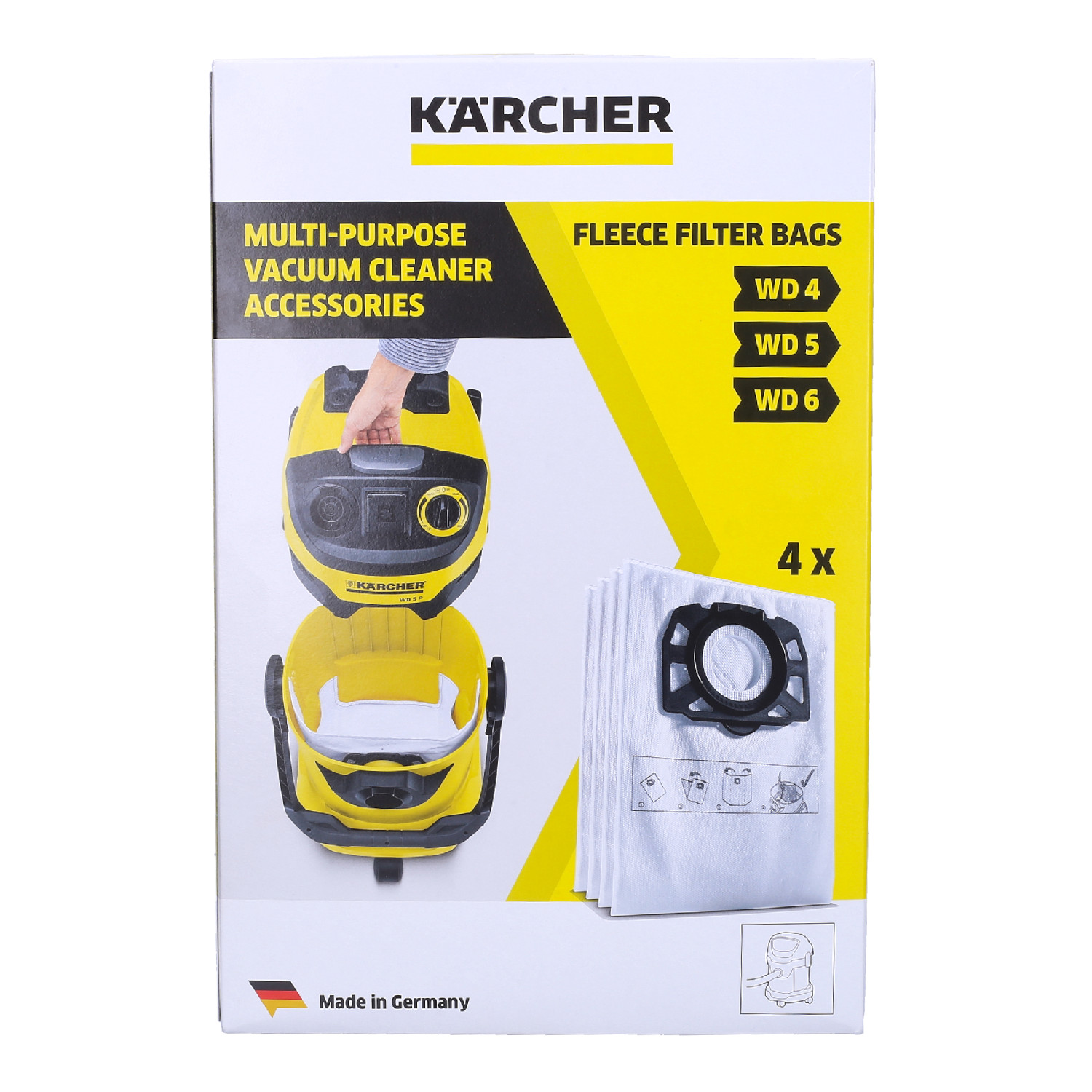 4x Vlies-Staubsaugerbeutel Für Kärcher WD 4 - 3-lagig & Reißfest