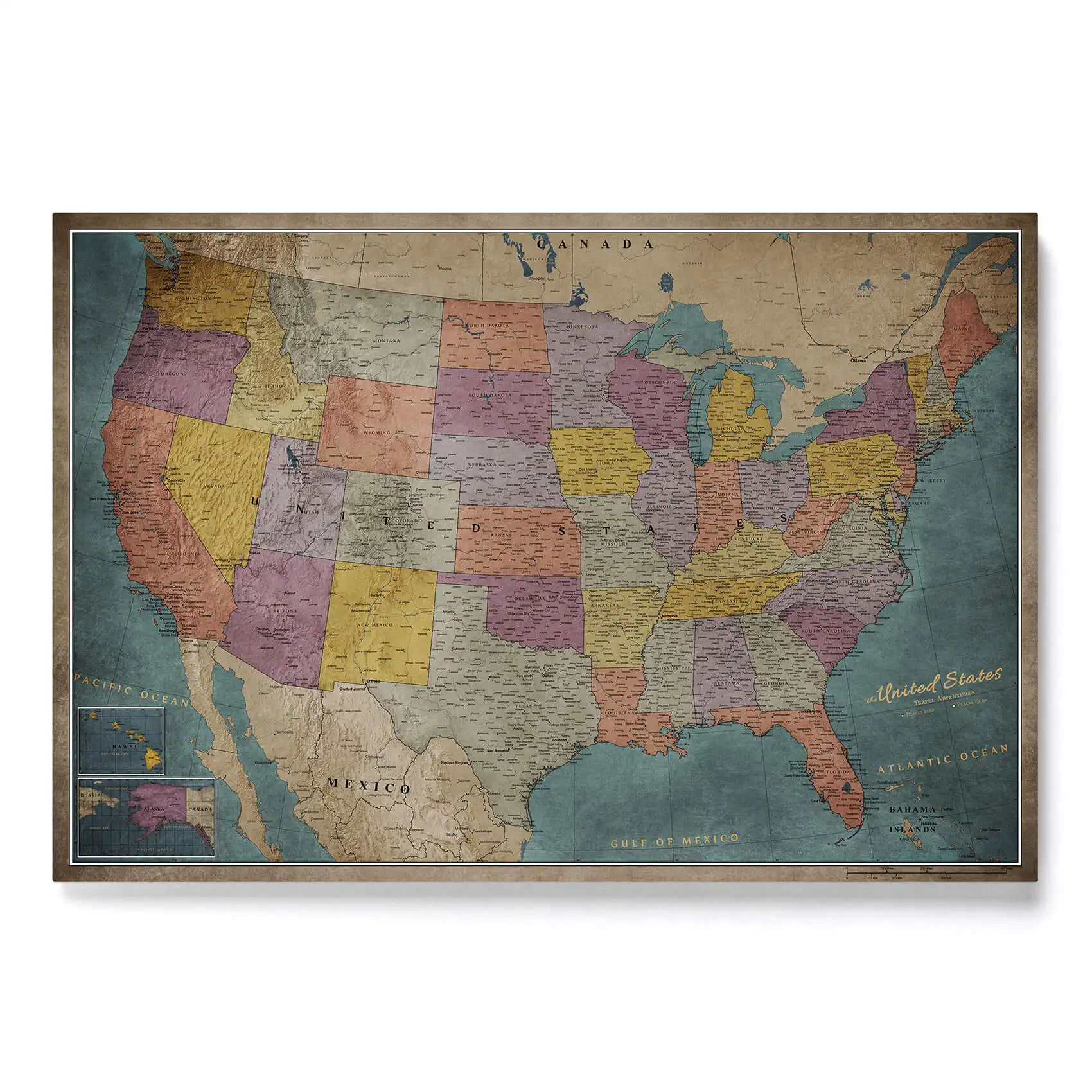 USA Rubbelkarte 58,4x40,6cm - Reisekarte Zum Abkratzen Der Besuchten Staaten