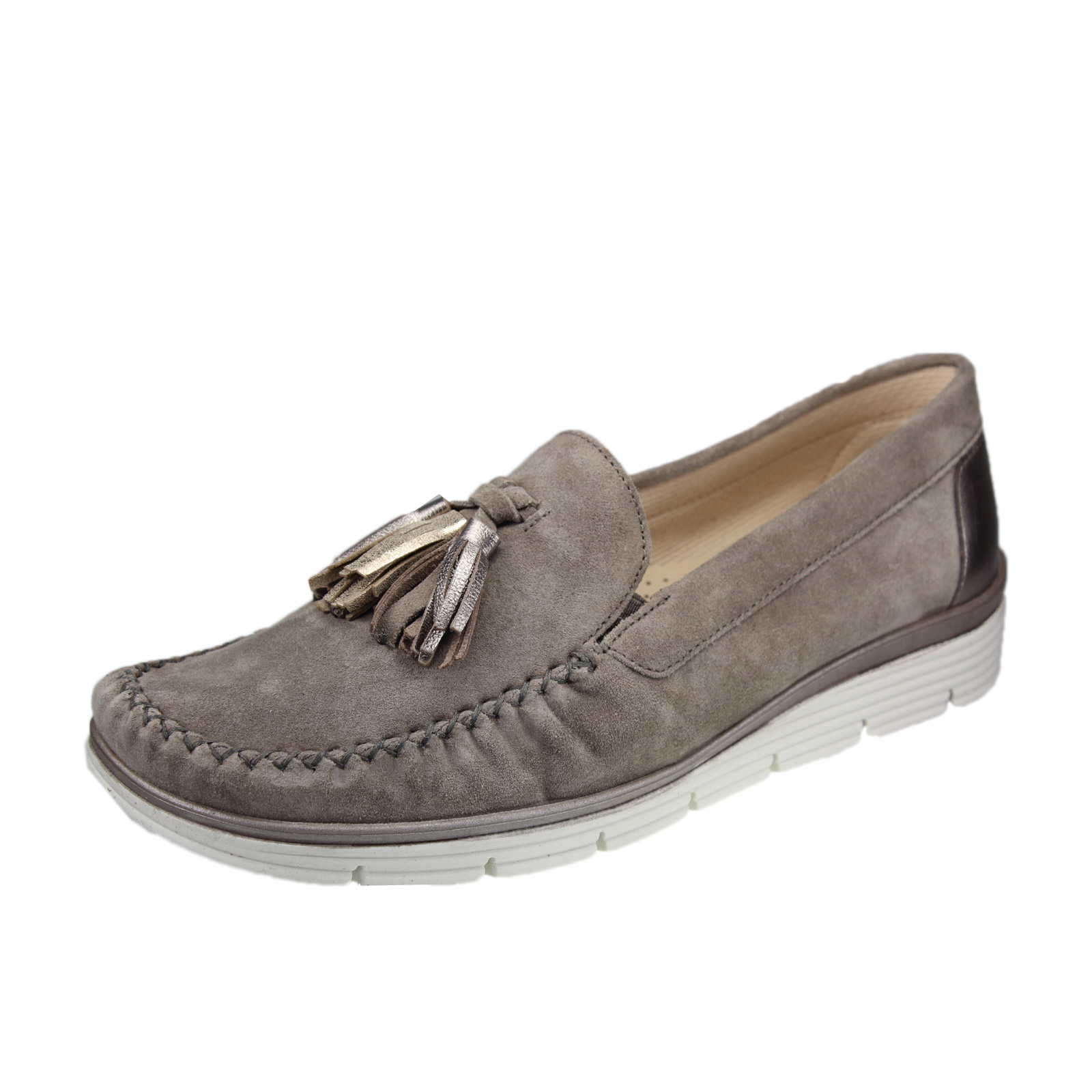 Gabor Damen Slipper 5.210 In Braun Rauleder - Eleganter Mokassin Mit Ziernähten