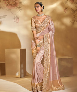INDIA MADE Sari Rosa-Gold - 5,5m Mit Blusenteil - Banarasi Seide Gewebt