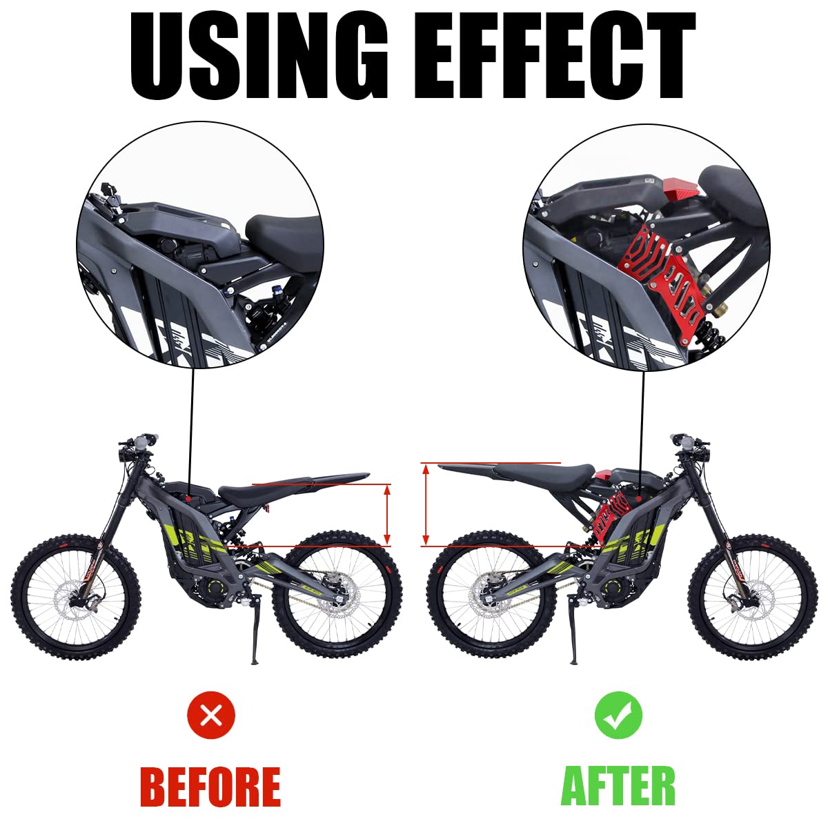 Mehr Komfort für Ihre Fahrt! Dieses Sitzerhöhung Kit in Knall-Lila hebt Ihren Sitz um 5 cm an - perfekt für Surron Light Bee und Segway X160/X260. Aus massivem 6061-T6 Aluminium, super stabil und leicht. CNC-gefräst für perfekte Passform, eloxierte Oberfläche rostfrei. Kommt mit 4 Unterlegscheiben für Feinjustierung. Das versenkte Muster sieht aggressiv und modern aus. Einfacher Einbau, macht Ihr Bike individueller und komfortabler. Hält auch bei schlechtem Wetter. Einfach montieren, und Sie sitzen besser! Für alle, die ihr Bike optisch und funktional aufwerten wollen. Sieht cool aus, tut gut, und hält was aus!