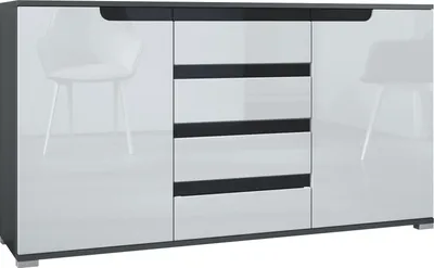 Richtig schönes Sideboard für dein Wohnzimmer! Das Sylt V2 ist 166,5 cm breit, 75,5 cm hoch und 35 cm tief - also perfekt für Fernseher, Deko oder als Ablage. In Weiß matt mit Hochglanz-Fronten und Brombeer-Akzenten sieht es modern und stylisch aus. Hat 4 Schubladen die super smooth auf Metall-Schienen laufen, und 2 Türen hinter denen sich je 2 Fächer verstecken - total viel Stauraum also! Aus MDF und Spanplatten, aber hochwertig verarbeitet und pflegeleicht. Mit Griffmulden zum einfachen Öffnen. Einfach aufzubauen mit bebilderter Anleitung - alles Material ist dabei. Die abgerundeten Kanten sind auch sicher für Kinder. Ob fürs Wohnzimmer, Flur oder Esszimmer - dieses Sideboard passt überall hin und bringt Ordnung in dein Zuhause. Sieht teuer aus, ohne teuer zu sein - einfach ein tolles Möbelstück!