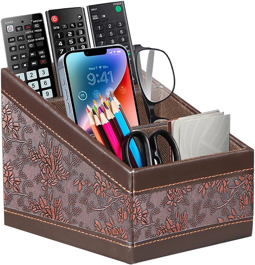 WIYETY Fernbedienungs-Halter Aus PU-Leder - 5-Fach Organizer Für Schreibtisch & Wohnzimmer