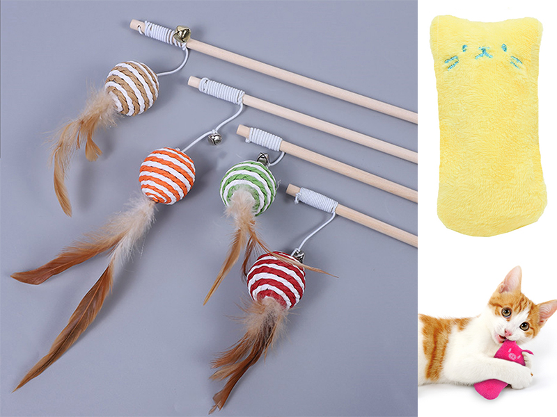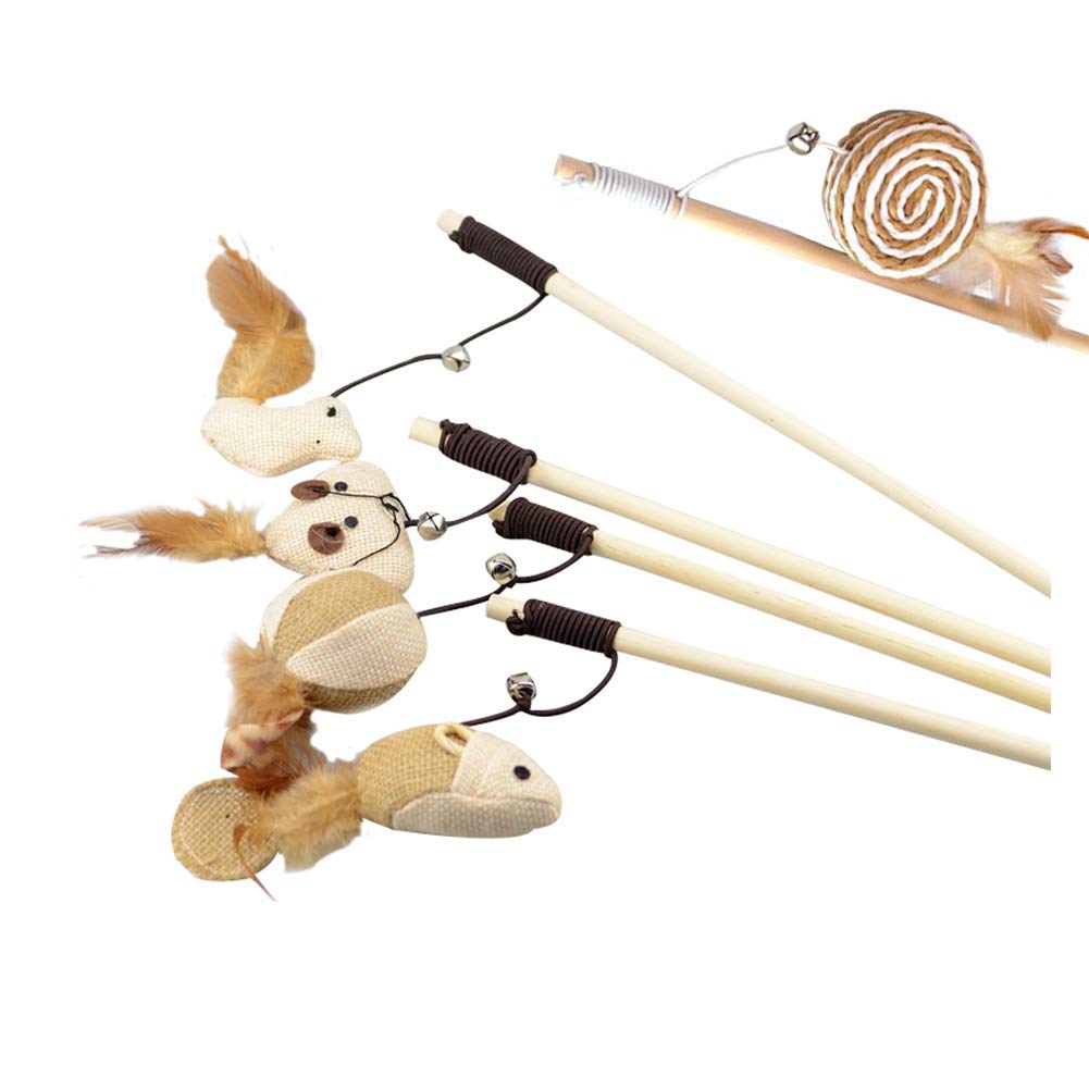 Croselyu Katzenspielzeug Set - 5 Holzstäbe, 5 Plüschtiere Mit Federn Für Interaktives Spielen