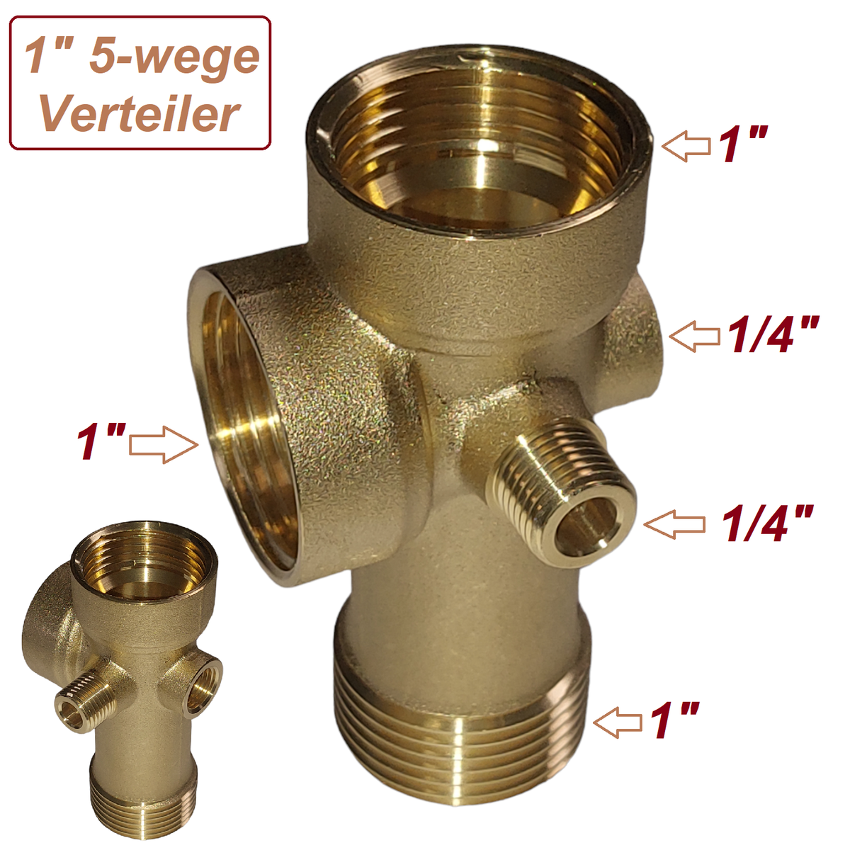 5-Wege Messing Verteiler DN25 - Wasserverteiler Mit 1" Gewinde