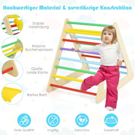 Spielspaß pur! Dieses geniale 5-in-1 Klettergerüst bringt Action ins Kinderzimmer. Enthält alles für stundenlangen Spielspaß: Kletterbogen, Schaukelgestell, Kletterdreieck, 2-in-1 Rutsche und eine weiche Matte. Alles faltbar - nach dem Spielen einfach zusammenklappen und platzsparend verstauen. Super für: • Drinnen bei schlechtem Wetter • Entwicklung motorischer Fähigkeiten • Körperkoordination training • Kreatives Spielen Einfacher Aufbau mit beiliegender Anleitung - kein Profi nötig! Aus hochwertigem, geschliffenem Holz ohne scharfe Kanten. CE- und CPC-zertifiziert für maximale Sicherheit. Trägt bis zu 91kg - also auch für mehrere Kinder geeignet. Features: • 5 Teile in einem Set • Einfach zu montieren • Platzsparend faltbar • Mit Sicherheitsmatte • Für Kinder ab 3 Jahren Perfektes Geschenk für Geburtstage, Weihnachten oder einfach so. Deine Kinder werden es lieben!