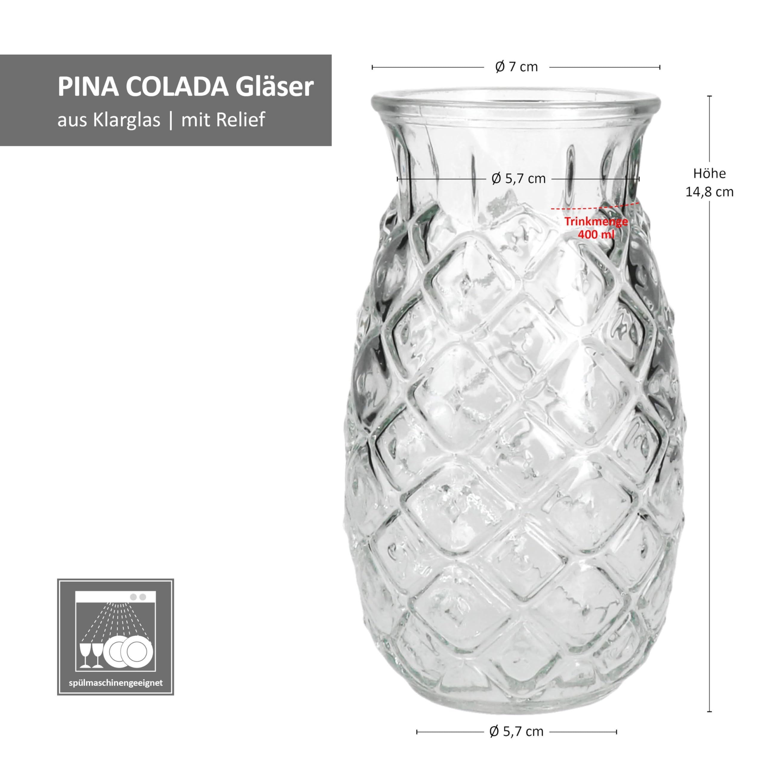 Sommer, Sonne, Cocktail-Time! Dieses 5-teilige Pina Colada Set bringt Urlaubsfeeling in deine Party. 4 Gläser plus süße Ananas-Schale - perfekt für 4 Personen!