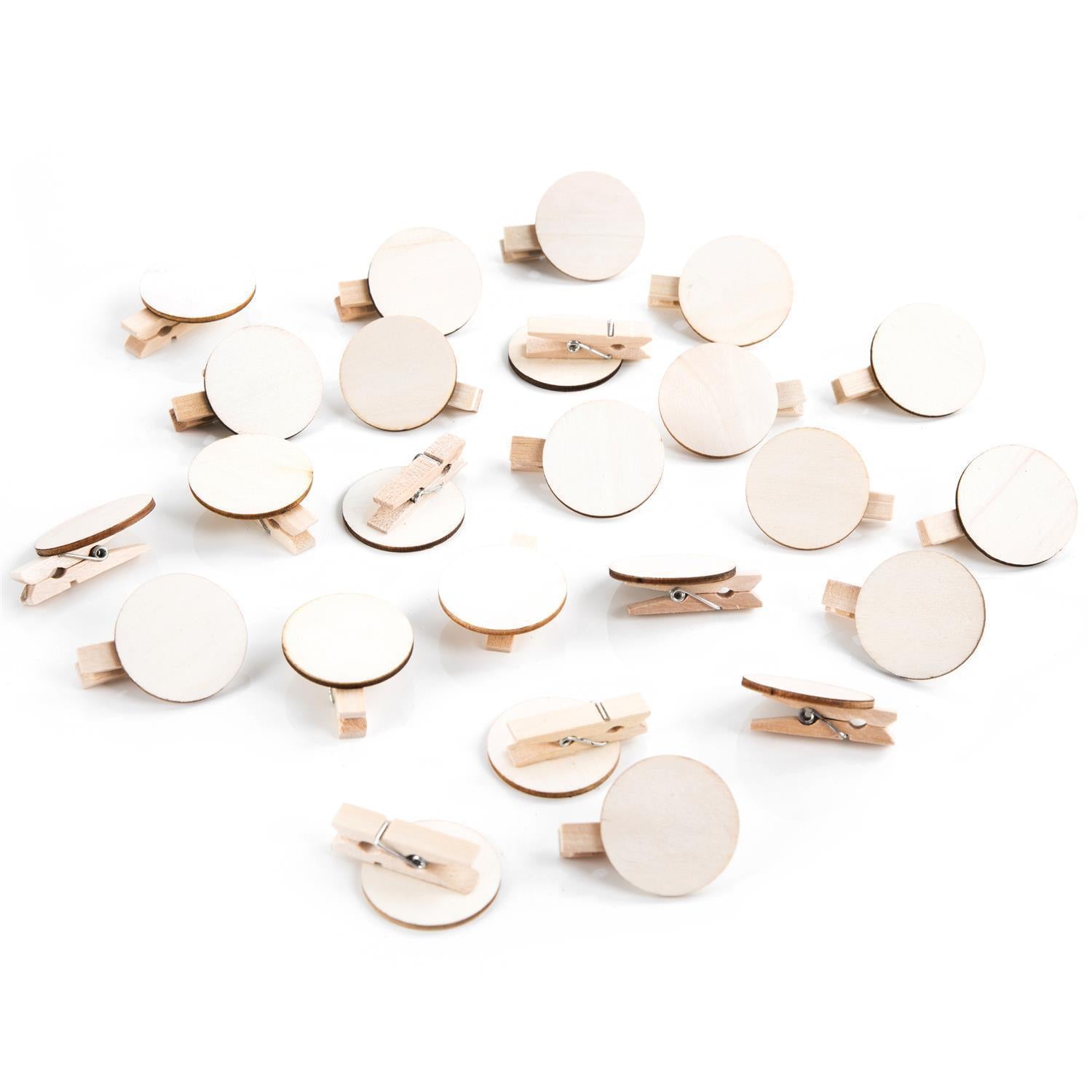 50 Holzklammern Mit Scheibe - Mini Wäscheklammern Für Basteln & Deko