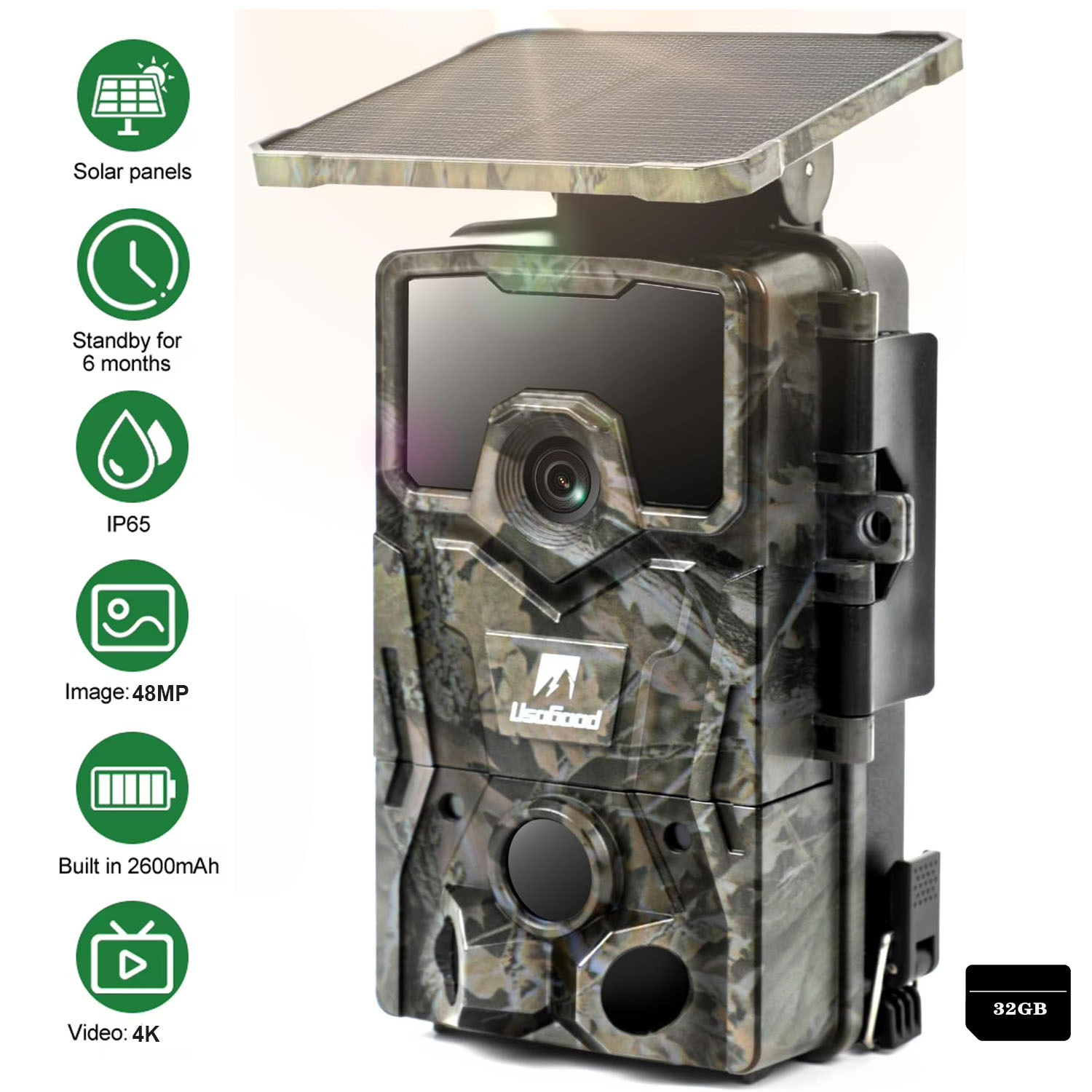 Solar-Wildkamera 4K 50 MP Mit Nachtsicht - Bewegungsaktiviert, Wasserdicht Für Jagd & Tierbeobachtung