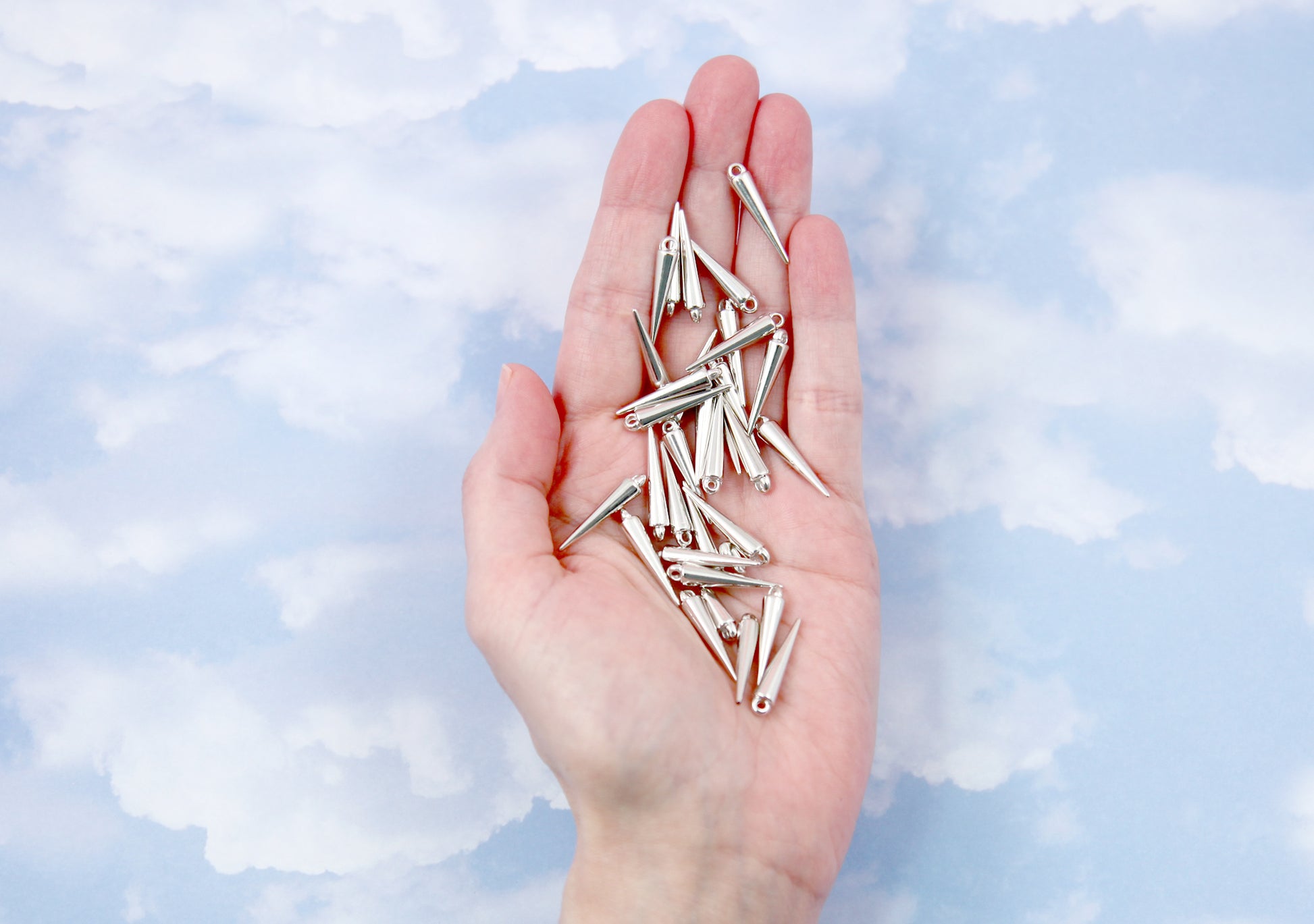 DIY-Schmuck-Fans, hier kommt euer neues Lieblingszubehör! 50 kegelförmige Spike-Anhänger in silber - perfekt für individuelle Kreationen.