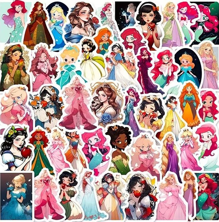 50 Stück Prinzessin Aufkleber - Kawaii Vinyl Sticker Set, Wasserfest & Geschwollen