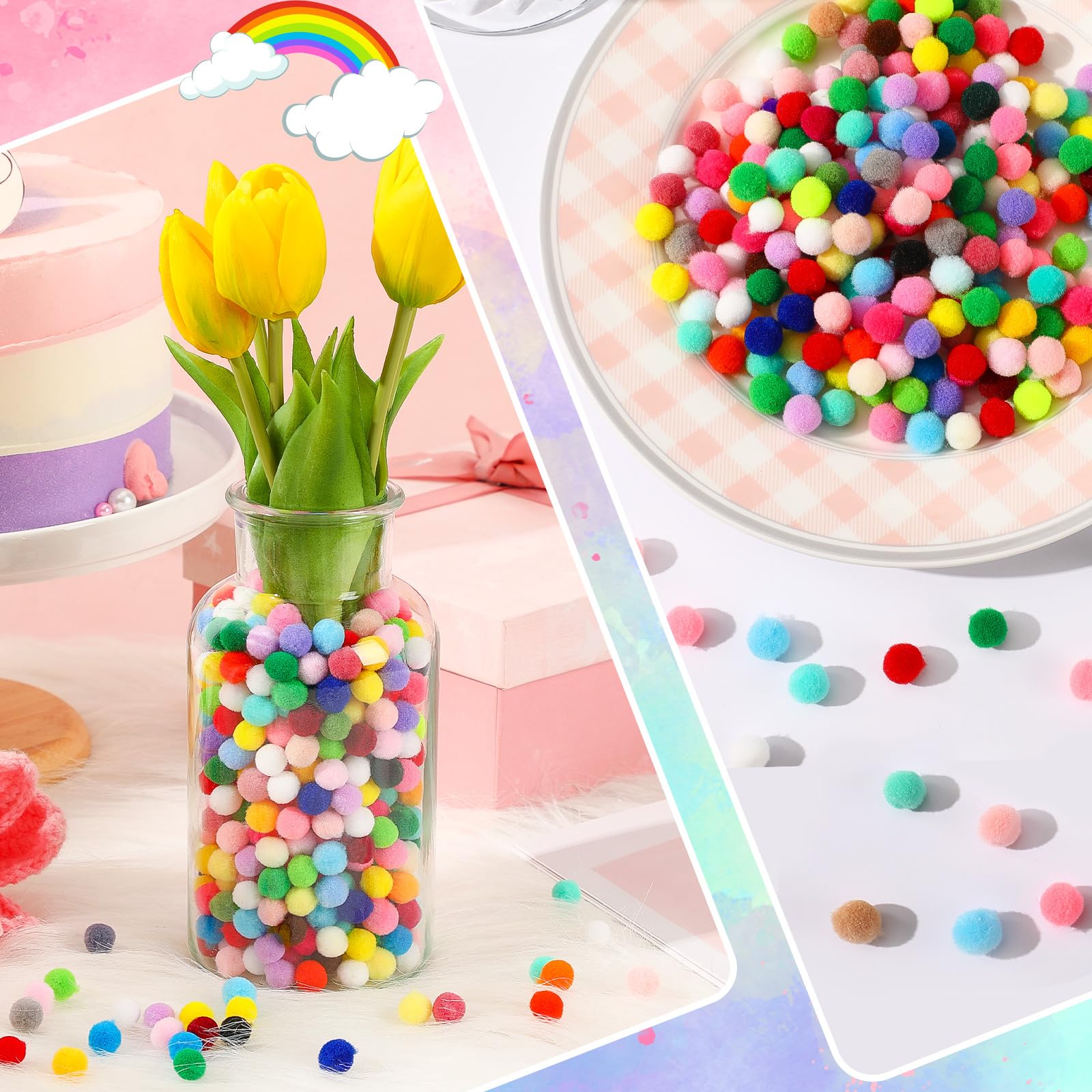 500 Bunte Pompons Zum Basteln - Filzkugeln Für Deko, Girlanden & Schmuck