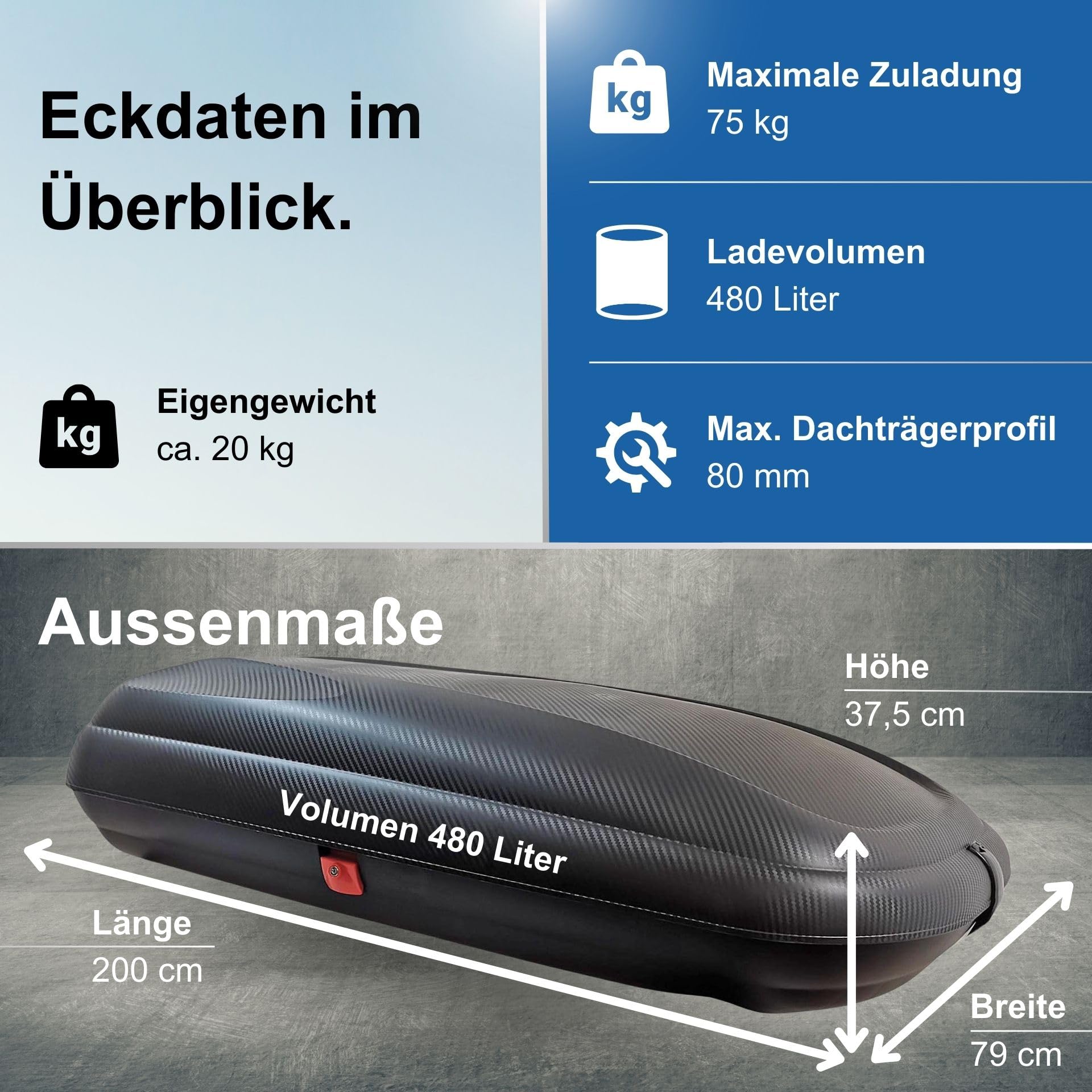 Mit einer maximalen Traglast von 50 kg bei nur 22 kg Eigengewicht ist die Box ideal für Familienurlaube oder Gruppenreisen in die Berge. Der aerodynamische Design reduziert zudem den Luftwiderstand und spart Kraftstoff.