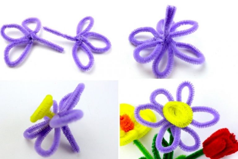 Im Set ist alles dabei: 20 grüne Basteldrähte für Stiele, 150 Blumenkerne, Klebestifte, Schleifen, Perlen, Blumenpapier, Floristikband und sogar eine detaillierte Anleitung.