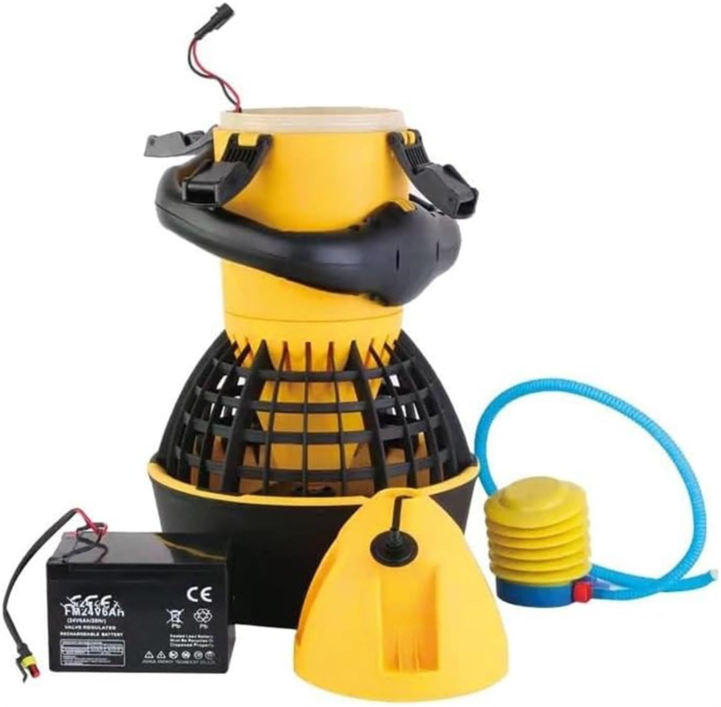 Stell dir vor, du gleitest mühelos durchs Wasser - ohne zu schwimmen! Dieser Tauchscooter mit 500W Motor zieht dich mit bis zu 5,4 km/h durch die Unterwasserwelt. Er hält bis zu 180 kg aus und ist bis 20 Meter tief wasserdicht (IPX8). Du kannst zwischen Blei-Säure- oder Lithium-Akku wählen - je nachdem brauchst du 30-70 Minuten Tauchspaß. Zwei Geschwindigkeitsstufen, Not-Aus-Taste und Propellerschutz machen das Ganze super sicher. Die ergonomische Form liegt gut in der Hand, und mit der beiliegenden Luftpumpe regulierst du deinen Auftrieb. Ob im Pool, See oder Meer - entdecke die Unterwasserwelt völlig neu! Perfect für Taucher, Schnorchler und Wasser-Abenteurer.