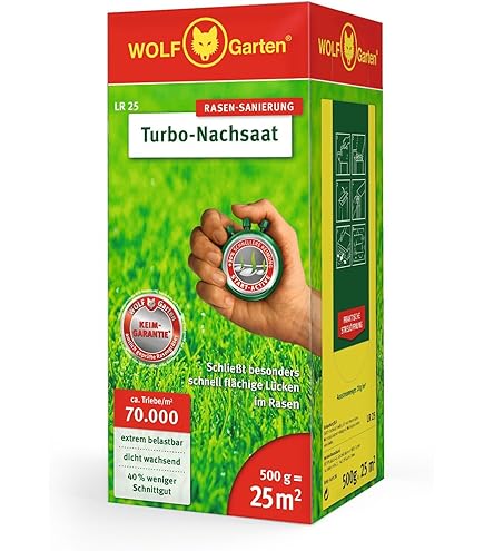 Schluss mit kahlen Stellen im Rasen! Diese Dehner Rasen-Nachsaat macht deinen Rasen wieder dicht und sattgrün. Die spezielle Mantelsaat saugt sich mit Feuchtigkeit voll und keimt super schnell. 500g reichen für ca. 25m² - perfekt für lückige Stellen oder ganze Rasenflächen. Die Mischung ist trittfest, bildet schöne Ausläufer und wächst auch unter Mährobotern problemlos. Einfach ausstreuen, angießen und schon nach kurzer Zeit sprießt frisches Grün. Dein Rasen wird dich mit dichter, gesunder Pracht belohnen! Für alle Rasenarten geeignet. Inhalt: 500g | Für ca. 25m² | Mantelsaat | Schnellkeimend