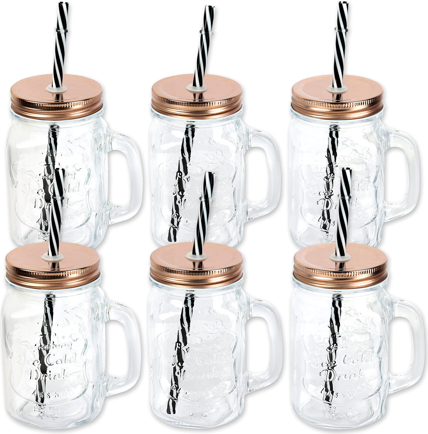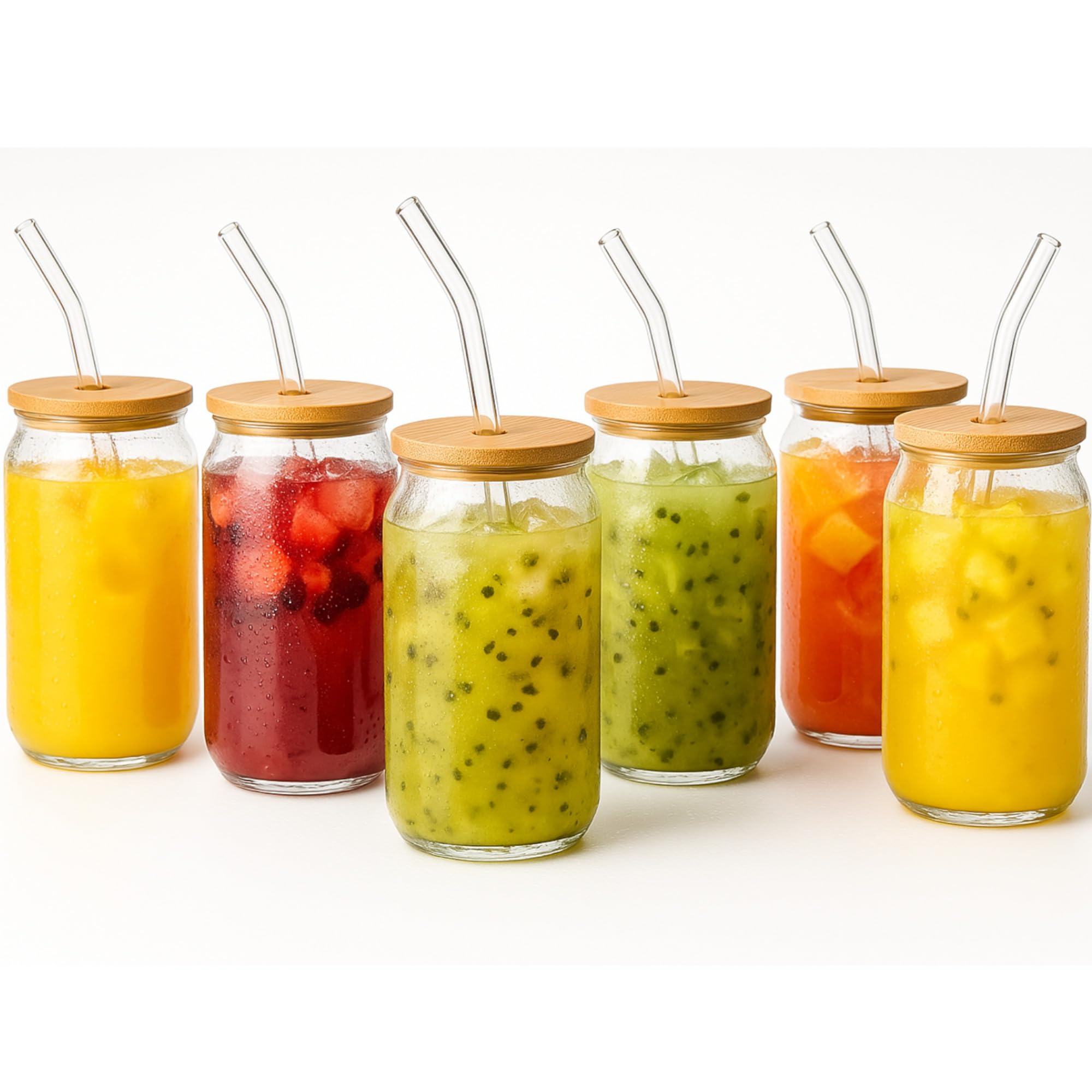 6 Glasbecher Mit Deckel & Strohhalm 500ml - Borosilikat Für Heiße & Kalte Getränke