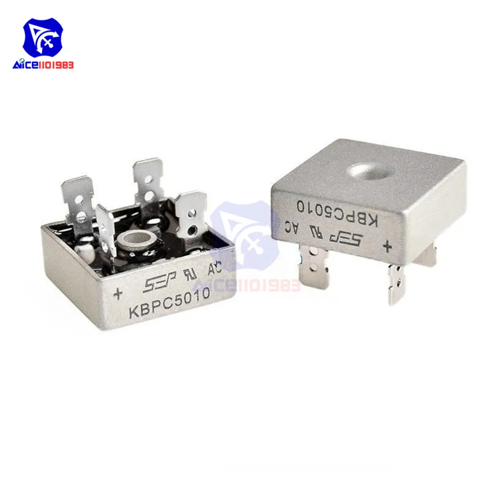Für alle Elektro-Projekte: Diese 10 Brückengleichrichter KBPC5010 wandeln Wechselstrom in Gleichstrom um und das bei satten 50A und 1000V! Aus hochwertigem Metallgehäuse und super verarbeitet, sind sie ideal für verschiedene Stromversorgungen.\\n\\nDie kleinen Bauteile haben es in sich: Gute Überstromkapazität, schnelle Abkühlung und geringer Spannungsabfall machen sie zu echten Allroundern. Ob für Spannungswandler, Stromwandler oder andere elektronische Komponenten - hier bekommst du gleich 10 Stück auf einen Schlag!\\n\\nMit Maßen von 28 x 28 x 22,5 mm sind sie kompakt aber leistungsstark. Die Isolationsspannung von 1000V und Übergangstemperatur von 100°C zeigen, dass sie auch bei anspruchsvollen Einsätzen nicht schlapp machen. Perfekt für Hobby-Elektriker und Profis!