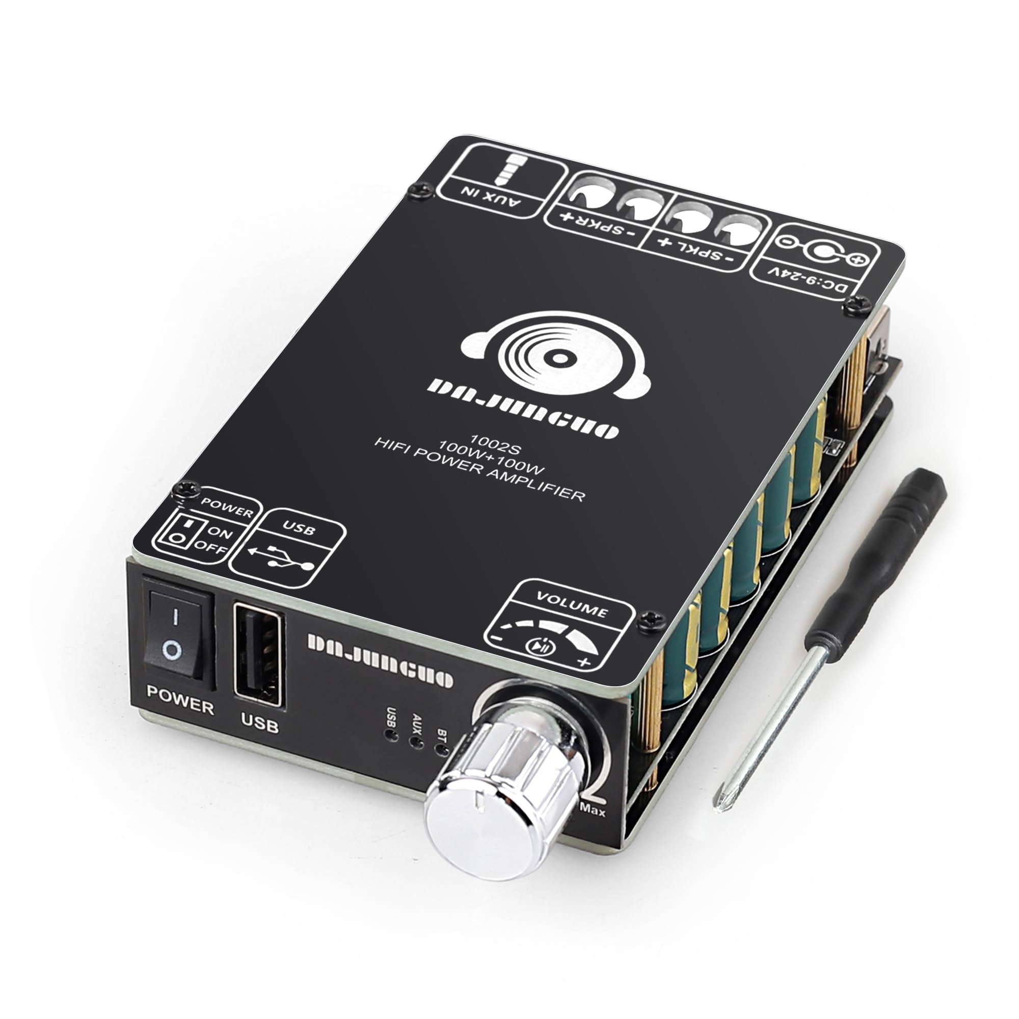 Für alle Audio-Fans: Diese Eujgoov Verstärkerplatine rockt dein Heimkino! Mit 2x50W für die Seitenkanäle und satten 100W für den Subwoofer hast du richtig Power. Bluetooth 5.0 sorgt für stabile Verbindung bis ca. 15 Meter - perfekt für Streaming von Smartphone oder Tablet. Mit großen Kondensatoren für stabilen Sound und Operationsverstärker mit niedrigem Rauschpegel - also kristallklarer Ton! Anschluss über DC12-24V/5A Netzteil (Achtung: 24V Akku nicht erlaubt!). Kompatibel mit Lautsprechern von 20-100W, 4-8Ω. Mit Überhitzungs-, Überstrom- und Kurzschlussschutz - alles safe also! Perfekt für DIY Lautsprecherbau oder Aufrüsten deiner Heimkino-Anlage. Einfach anschließen und von beeindruckendem Sound überraschen lassen!