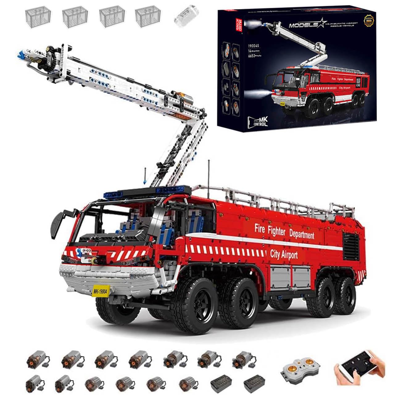 MocSpaß Technik Fire Truck - 5130+ Teile Feuerwehrauto Bausatz 1:16 Mit Motor