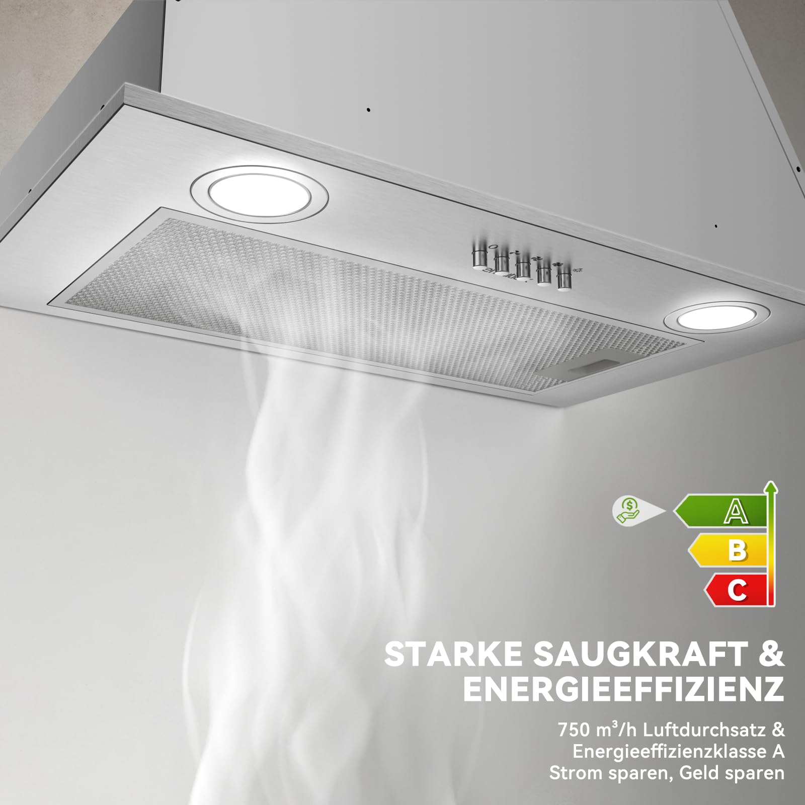 Endlich eine Dunstabzugshaube die wirklich was kann! Die Hermitlux in Edelstahl saugt mit satten 750 m³/h alle Kochgerüche und Fettdämpfe weg. Und das bei unter 68 dB - also richtig leise, dass du dich normal unterhalten kannst.