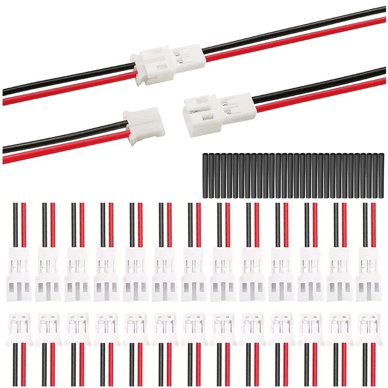 Praktisches JST XH Stecker-Set mit 10 Paaren 2-poliger Stecker und Buchsen! Perfekt für deine Elektronik-Projekte wie Drones, LED-Streifen, Roboter oder Modellbau. Mit UL1007 22AWG Kabel in Rot/Schwarz, je 100 mm lang. Verzinnter Kupferdraht für beste Leitfähigkeit und keine Oxidation. Einfache Installation - kein Löten notwendig! Inklusive 15 Schrumpfschläuchen für professionelle Verbindungen. Ideal für Batterieanschlüsse, Beleuchtungsprojekte und alle möglichen DIY-Elektronik-Vorhaben. Hochwertige Verarbeitung für sichere und dauerhafte Verbindungen!