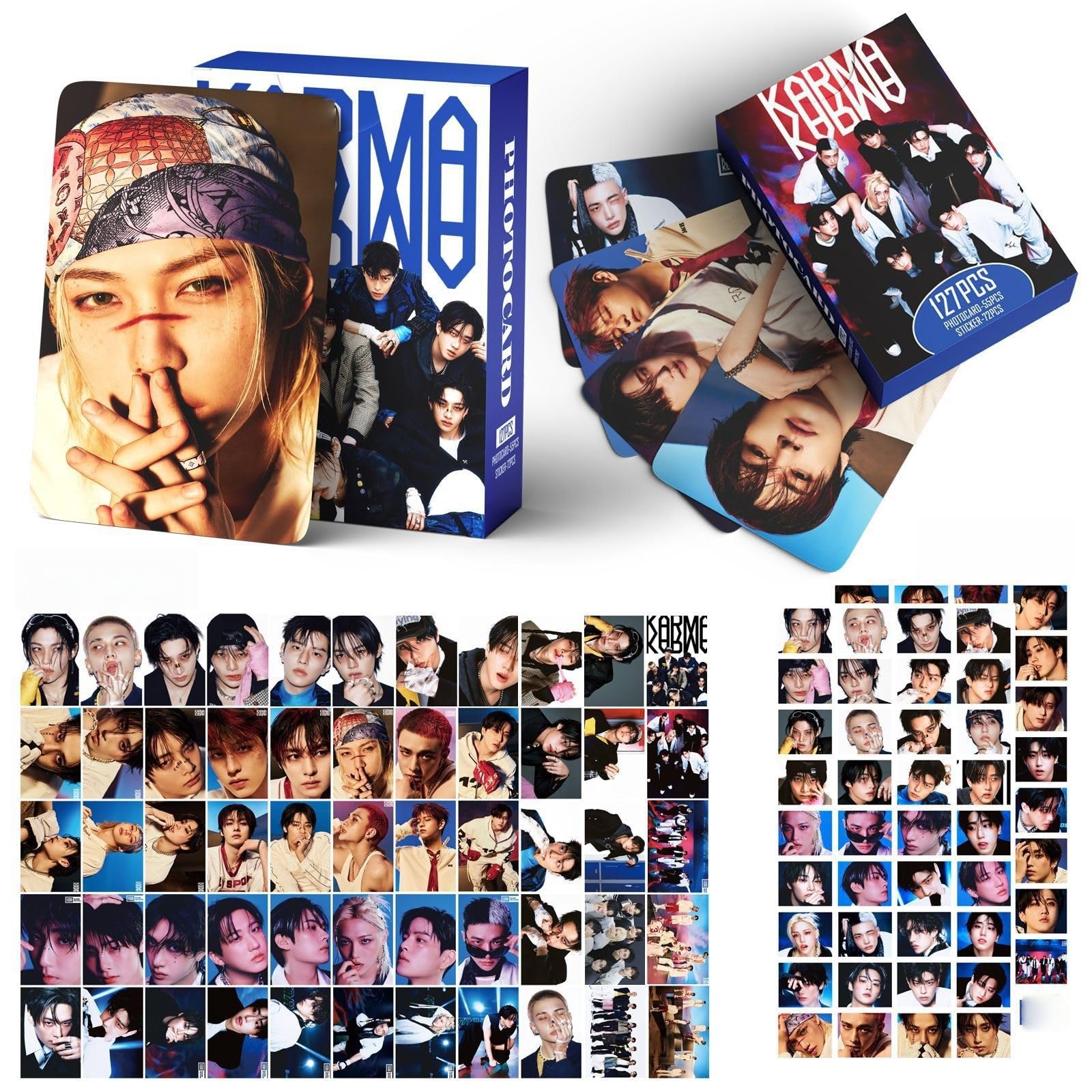 Stray Kids Photocards Set - 55 Lomo Karten + 72 Aufkleber KARMA Album