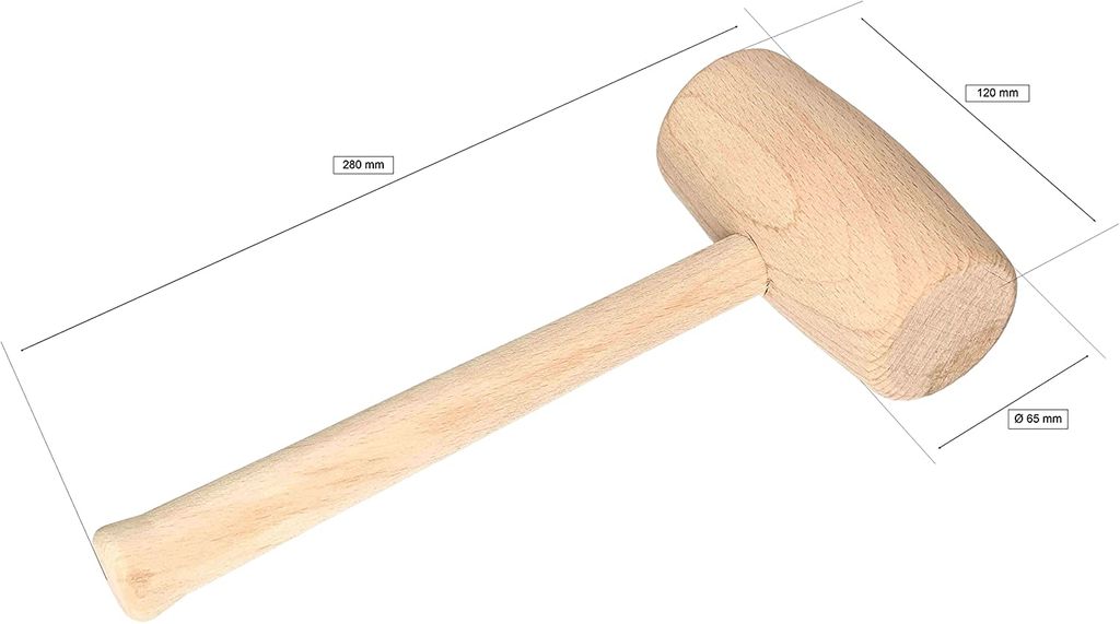 Holzhammer 70mm Kopf, 550g - Weißbuche Mit Eschenstiel, Metallmantel