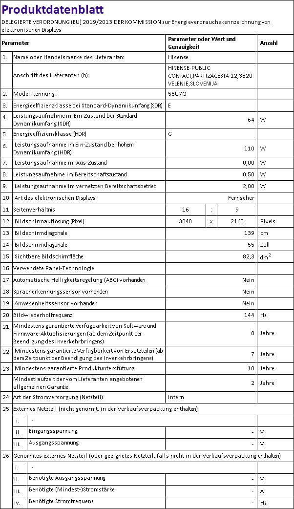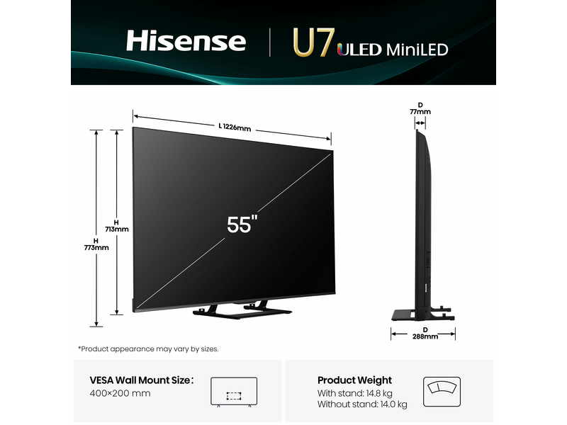 Hisense 55U7Q 55 Zoll 4K Mini LED TV | Smart TV Mit 144Hz & Dolby Atmos