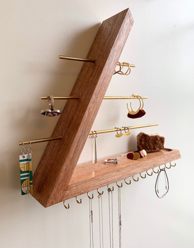 Goldener Wand Schmuck Organizer - 56 Haken Mit Tablett 37,6x8,4cm