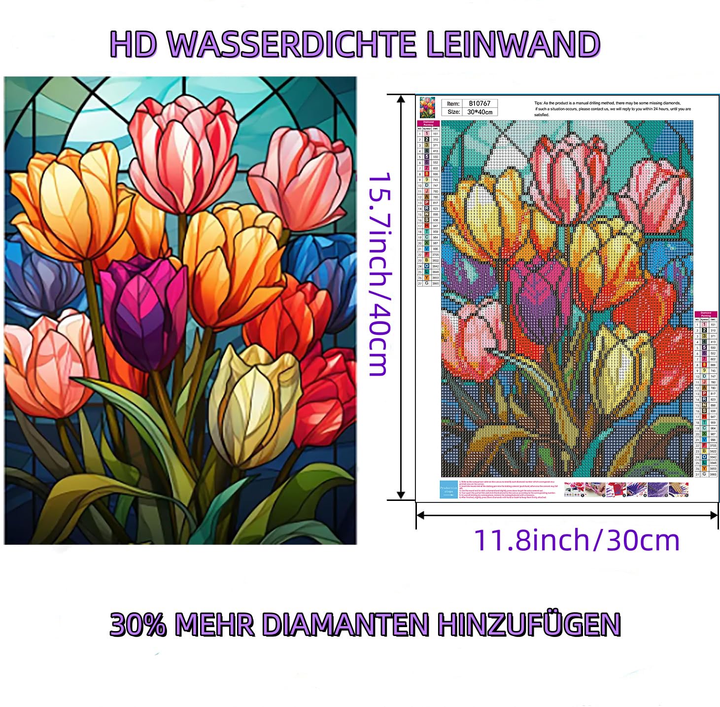 30x40cm großes Blume-Herz Motiv. Alles enthalten: Leinwand, Diamanten, Stift und Tablett.