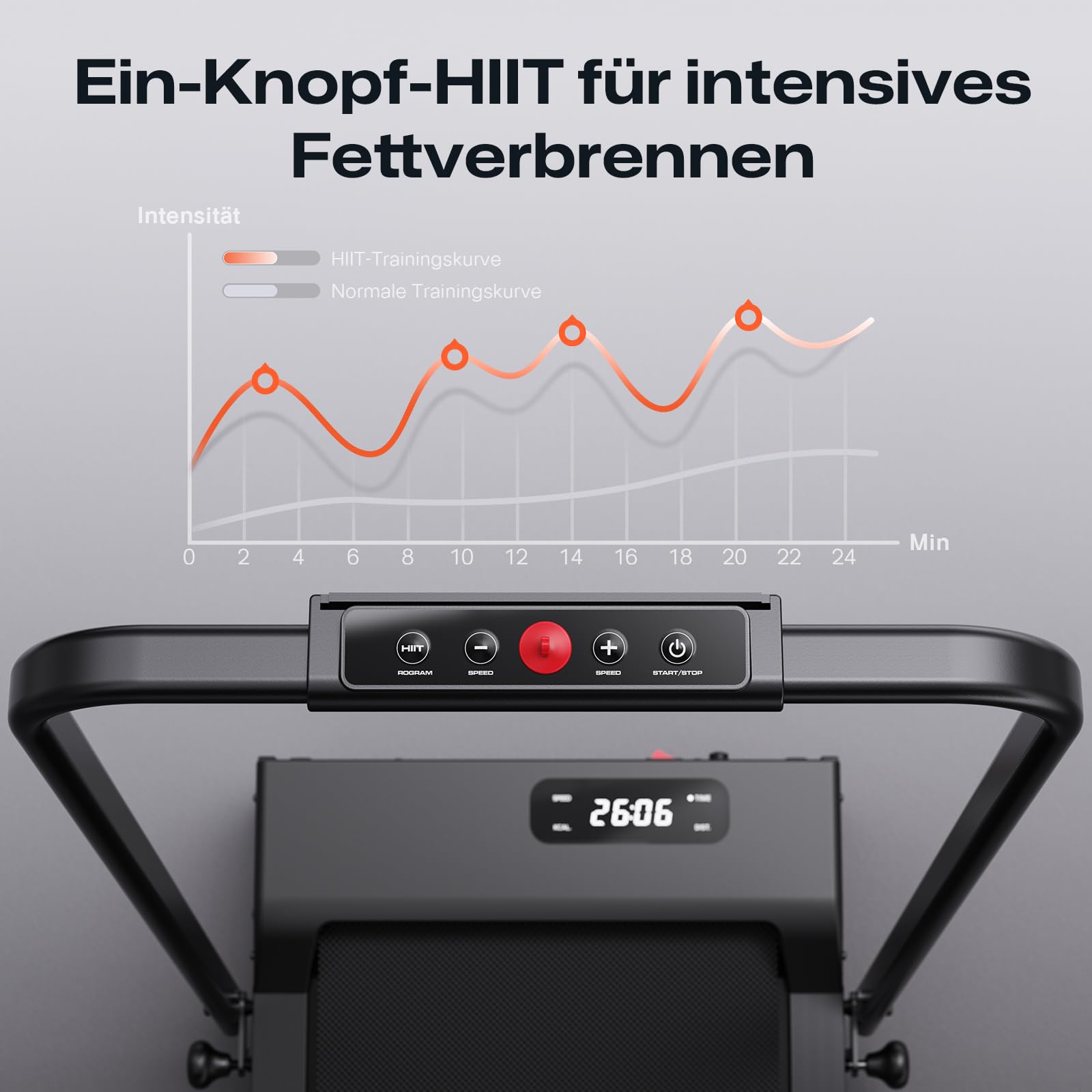 Hey Sportskanone! Dieses UREVO Laufband ist echt vielseitig - als Untertisch-Laufband für aktives Arbeiten (1-6 km/h) oder als vollwertiges Laufband bis 10 km/h. Mit 2.5PS Motor läuft es super leise und gleichmäßig. Das coole Feature: 9% manuell einstellbare Neigung und HIIT-Modus für intensives Training! So verbrennst du bis zu 50% mehr Kalorien. Die 6-Punkt-Stoßdämpfung schont deine Gelenke. Komplett montiert geliefert, klappbar auf 115x63x12cm - perfekt für kleine Räume. Mit Transportrollen leicht zu bewegen. Das LED-Display zeigt alles Wichtige an und du kannst per Handstange oder Fernbedienung steuern. Sicherheitsschlüssel inklusive. Ideal für Homeoffice oder Wohnung! 1 Jahr Garantie gibt's obendrauf. Einfach auspacken, aufstellen und loslaufen - leichter geht's nicht!