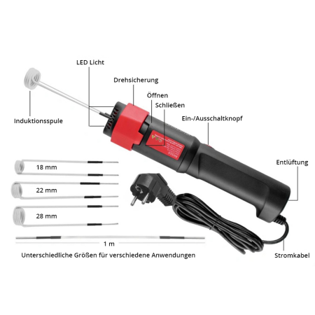 Mit diesem Induktionsheizgerät löst du selbst festgerostete Schrauben spielend leicht. 1,5 kW Leistung, 30–60 kHz Frequenz und vier verschiedene Kupferspulen für unterschiedliche Schraubengrößen. Flammenlos und sicher, mit Lüfter zur Kühlung. Ein Profi-Werkzeug für jede Werkstatt – schnell, effizient und langlebig.