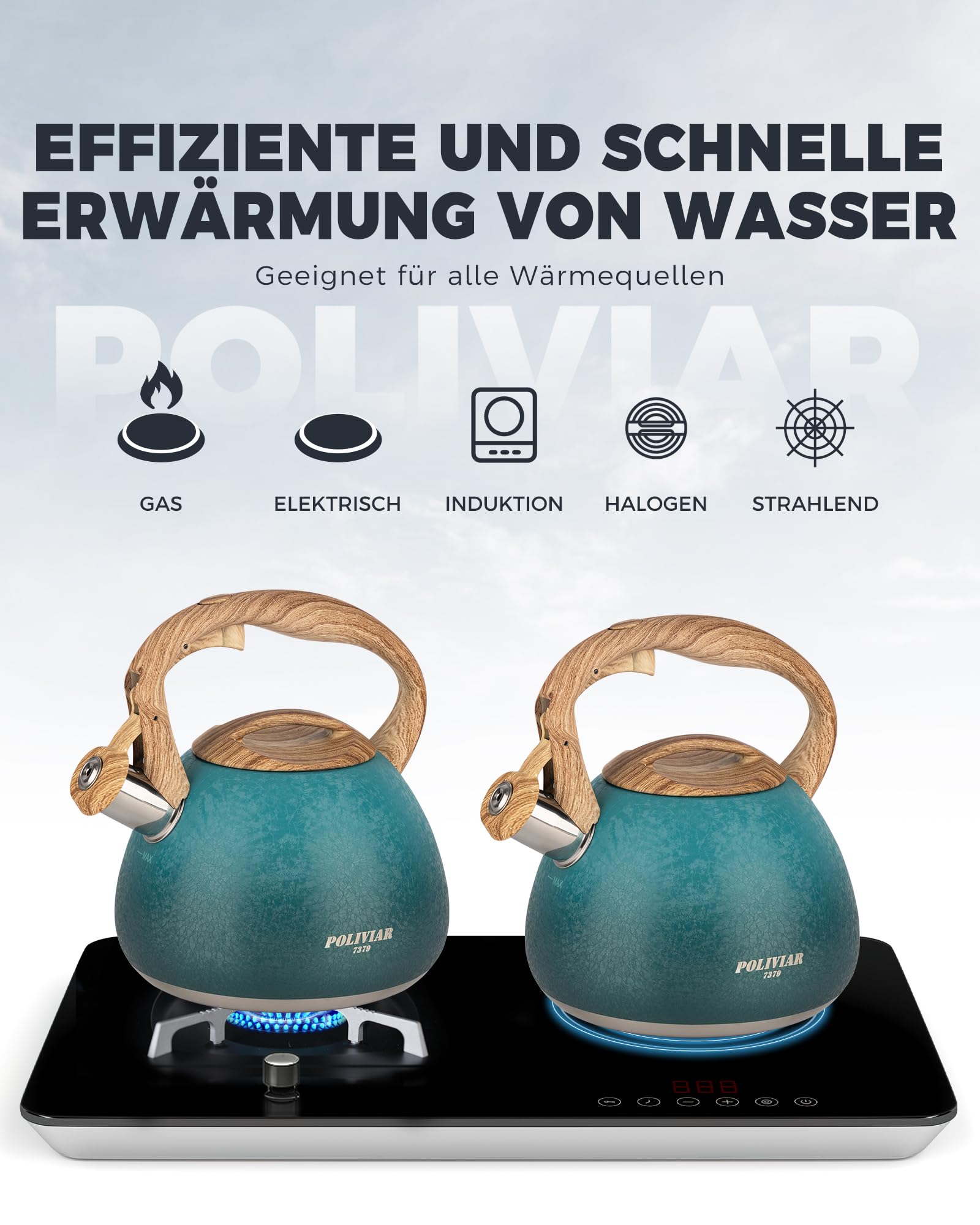 Wasserkessel 2,5L Induktion - Pfeifkessel Edelstahl Mit Holzgriff | Für Gasherd, Keramikofen & Induktionskochfeld