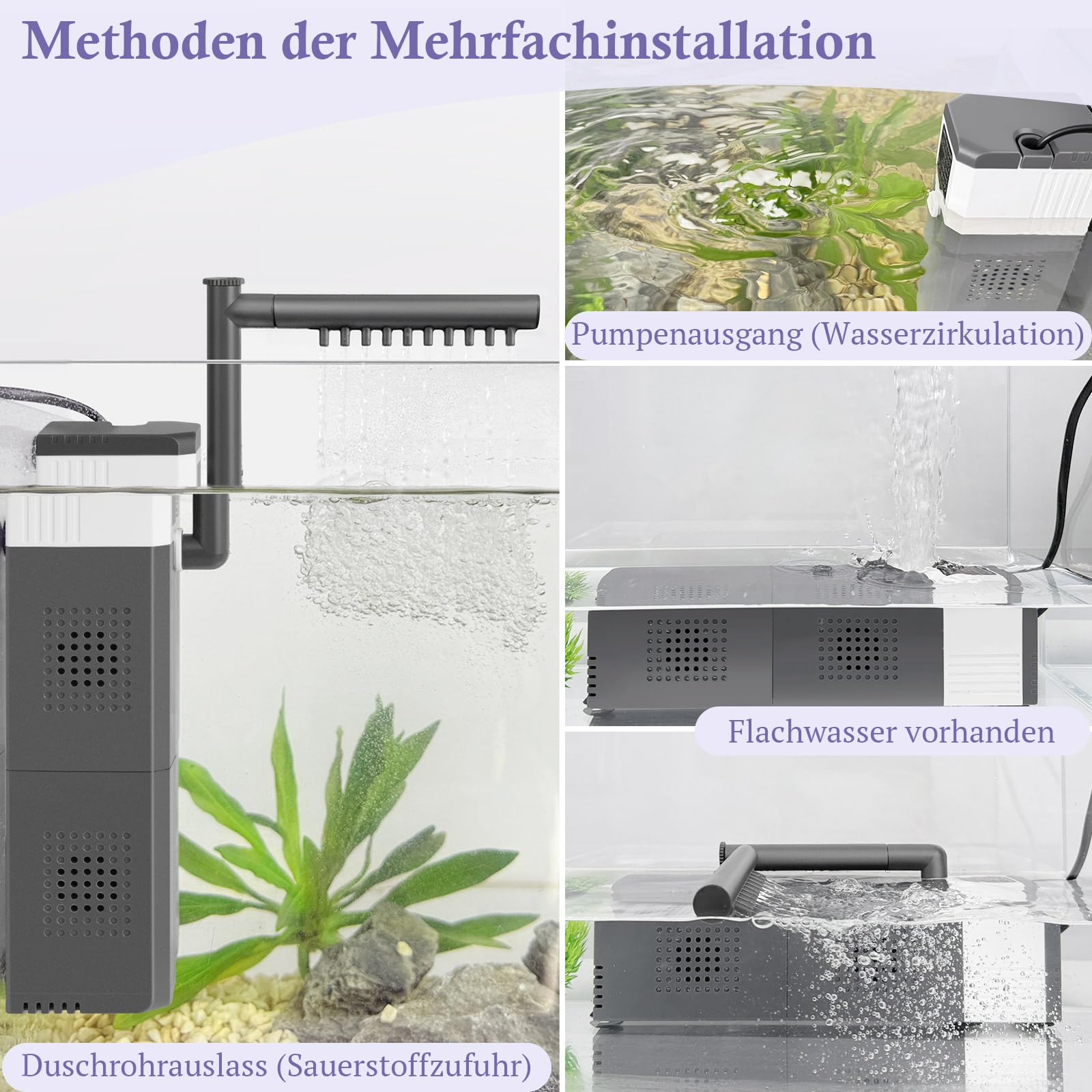 Drei Funktionen in einem: Filtert Schwebstoffe raus, reichert das Wasser mit Sauerstoff an und sorgt für gesunde Zirkulation. Sogar Ölfilme auf der Oberfläche werden entfernt!