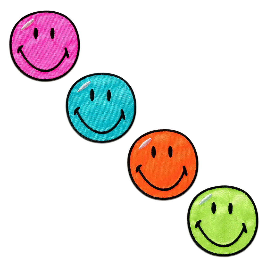 Bring mehr Good Vibes in dein Leben mit diesem lässigen Smiley-Bügelbild! In knalligem Neon-Grün und 12,5x12,5cm Größe ist es der perfekte Eye-Catcher für Jeansjacken, Rucksäcke oder T-Shirts. Aufwendig gewebt und mit kräftigen Farben - das sieht nicht nur gut aus, sondern hält auch ewig. Einfach aufbügeln oder aufnähen und schon strahlt dein Kleidungsstück mehr Freude aus. Inklusive Bügel- und Pflegeanleitung. Perfekt um kaputte Stellen zu kaschieren oder einfach um deinem Style mehr Persönlichkeit zu verleihen. Lächeln garantiert!