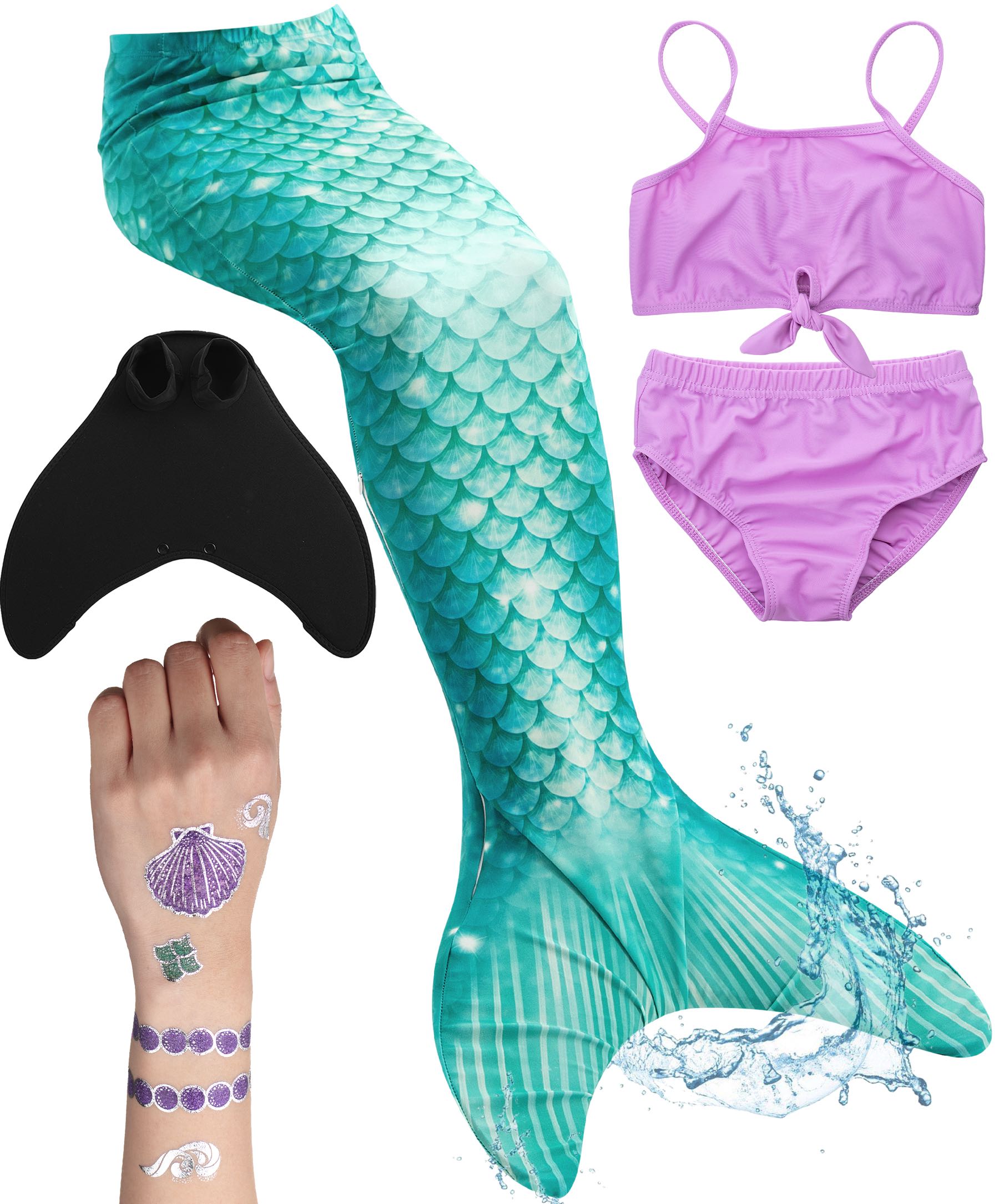 5er-Set Meerjungfrau Badeanzug Kinder - Mit Schwanzflosse Und Accessoires